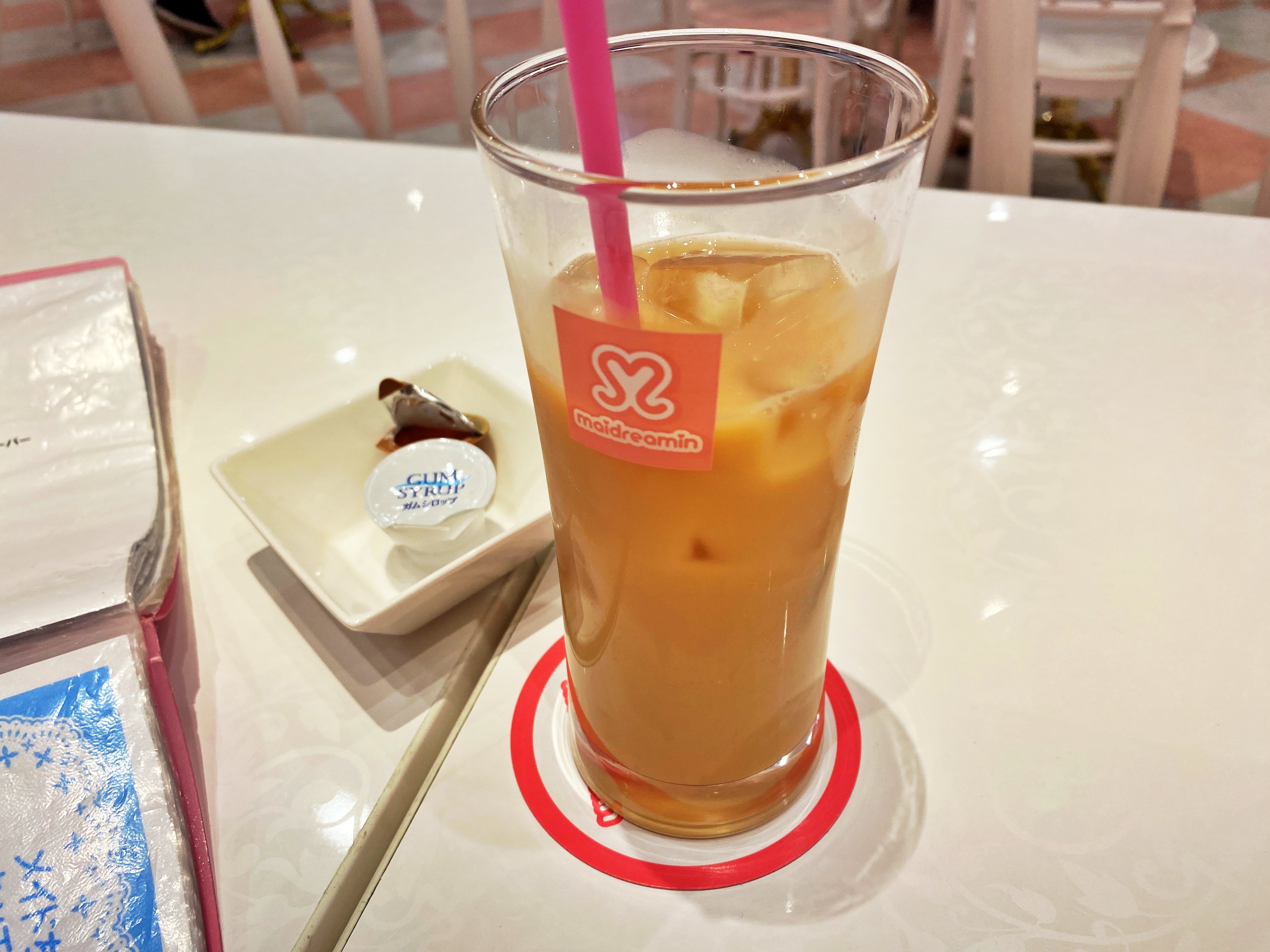 정식 코스는 오므라이스나 카레 스테이크 중 선택이 가능하고 디저트 코스는 프라페가 기본으로 나오고 팬케익을 추가하면 펜케익도 나온다고 합니다. 드링크 코스는 말 그대로 무알콜 혹은 알콜이 함유된 칵테일을 선택할 수 있습니다. 드링크 코스에 330엔을 더하면 기념촬영이 추가되기도 하고요.