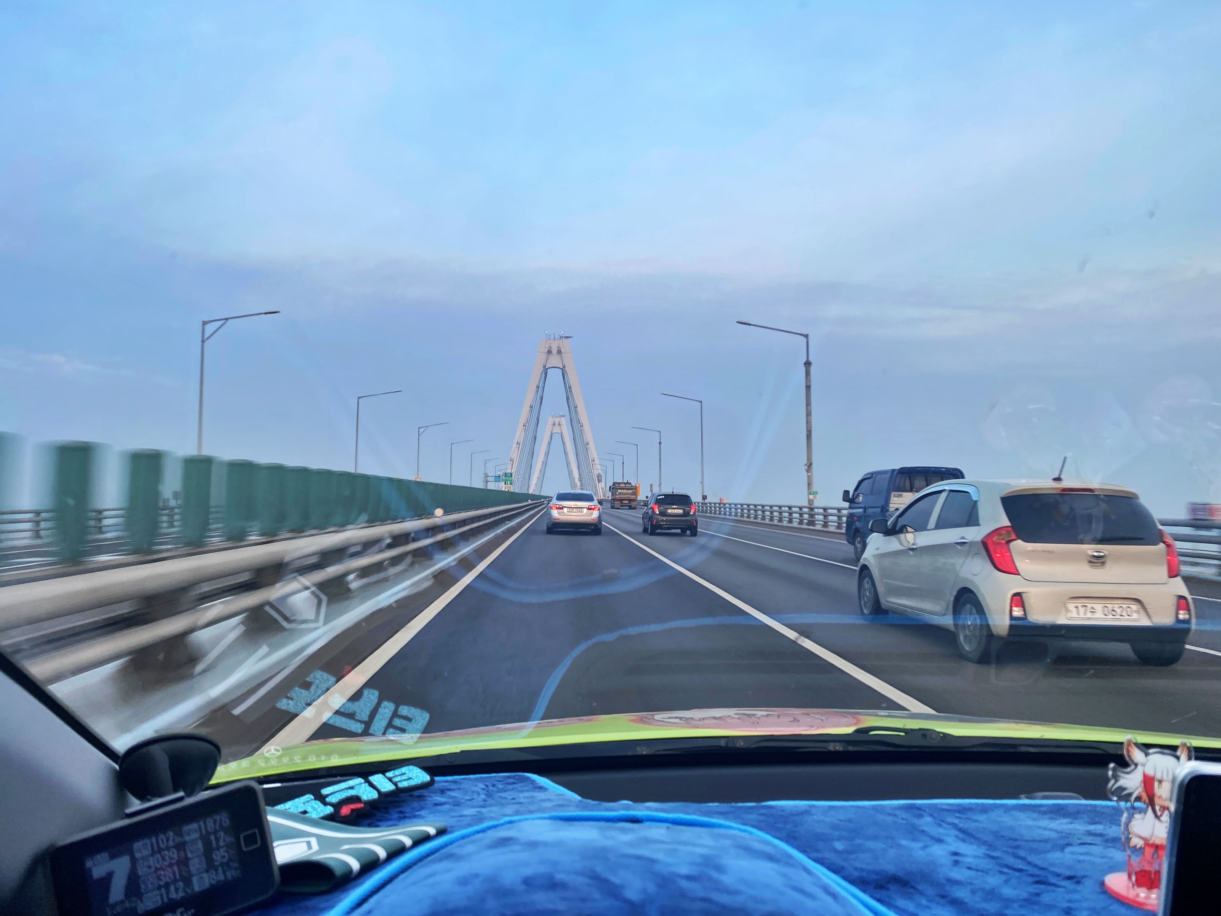 매달 한 번씩 가는 여행에 설레는 느낌은 덜하지만, 매번 건너가던 인천대교 대신 영종대교를 건너니 조금은 다른 느낌입니다. 그냥 제 차를 타고 갔고요. 약 3만 원 정도 충전된 하이패스 카드가 필요 없으시다며 도로비 내고 가라고 쿨하게 제게 건네주셨습니다.