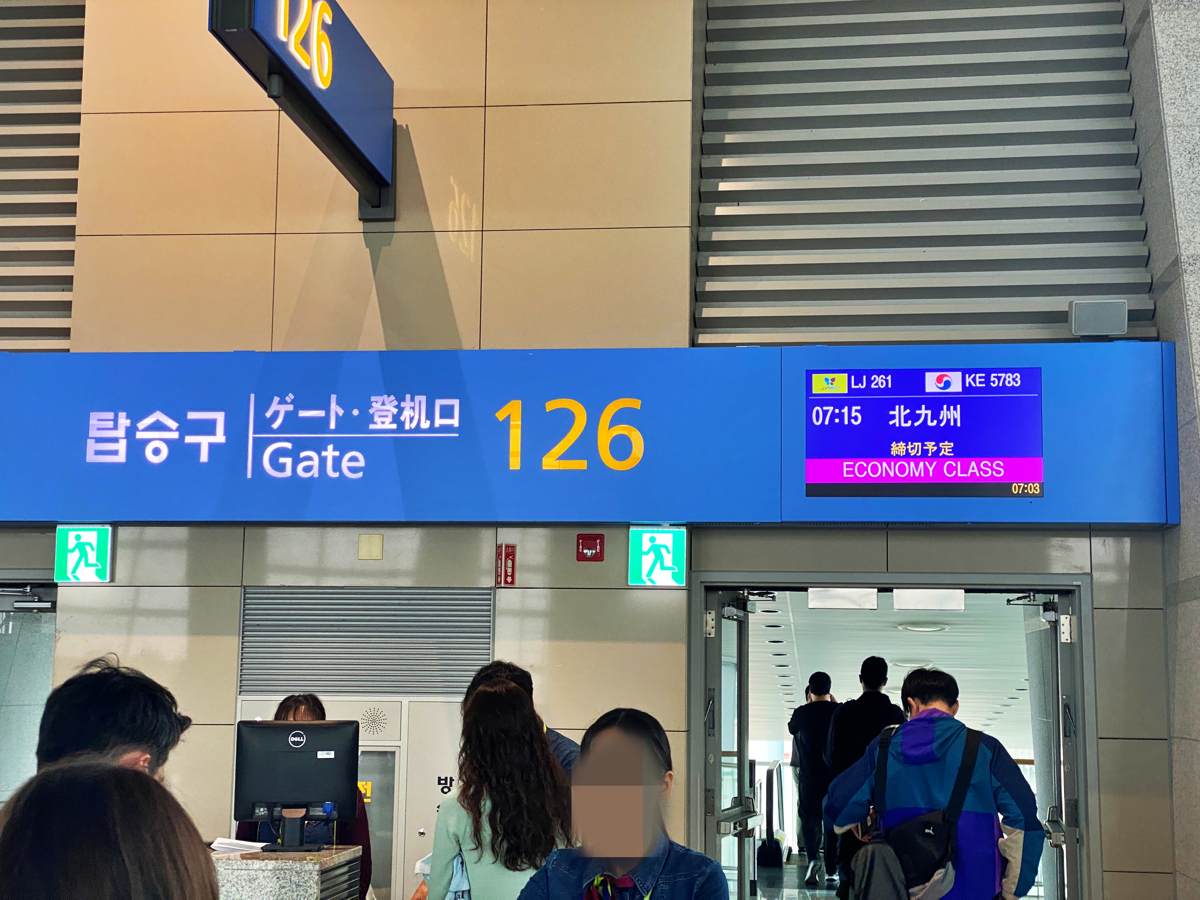 탑승동 저 끝 126번 게이트에서 항공기에 탑승합니다.