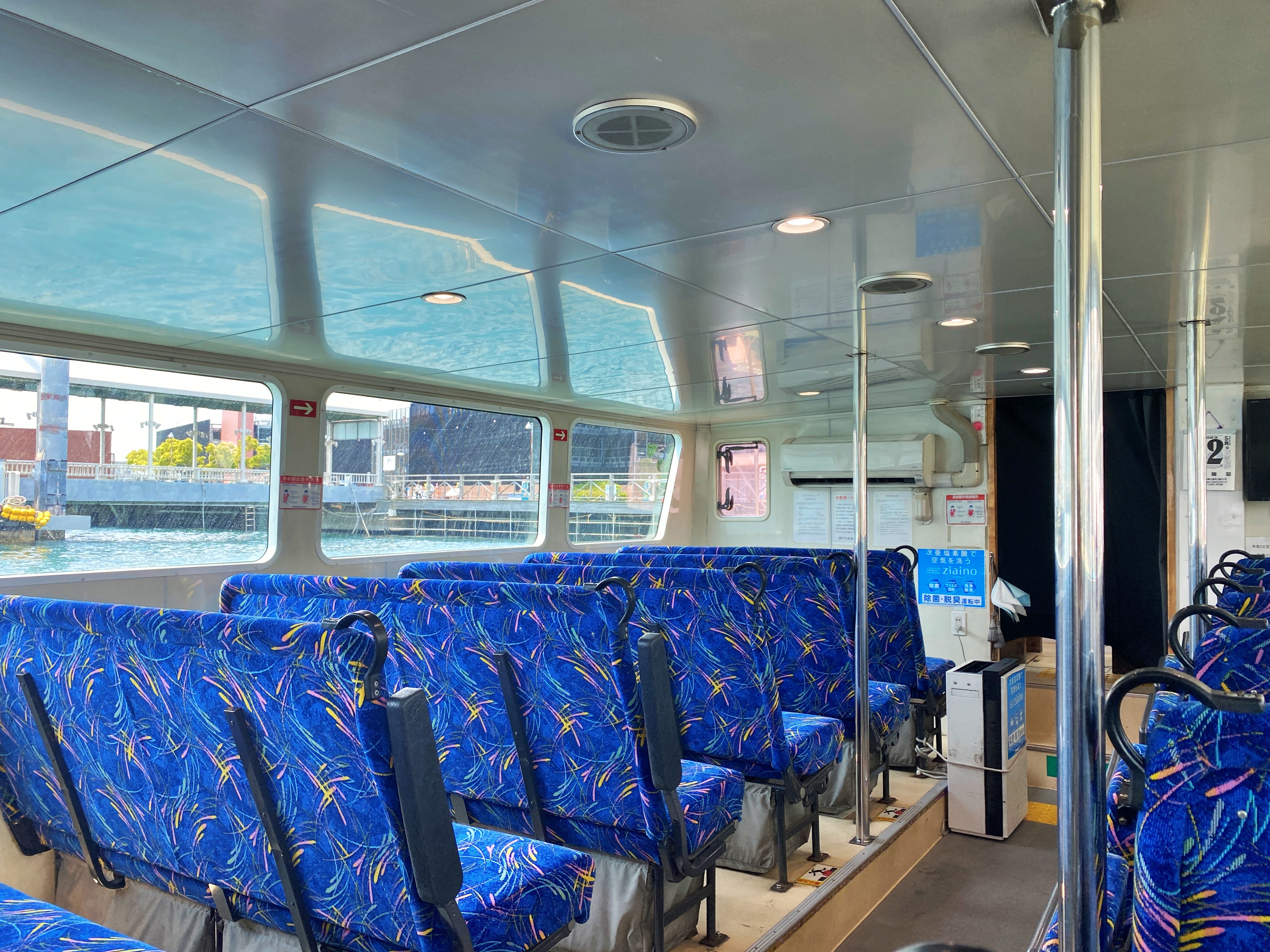 실내에서도 바다 풍경은 아주 잘 보입니다. 왕복으로 움직이면서 한 번은 바깥에서 풍경을 구경하고 한번은 안에서 풍경을 구경하는 것도 나쁘지 않아 보이네요. 모지항과 가라토항을 왕복하실 여러분들께도 추천드립니다.