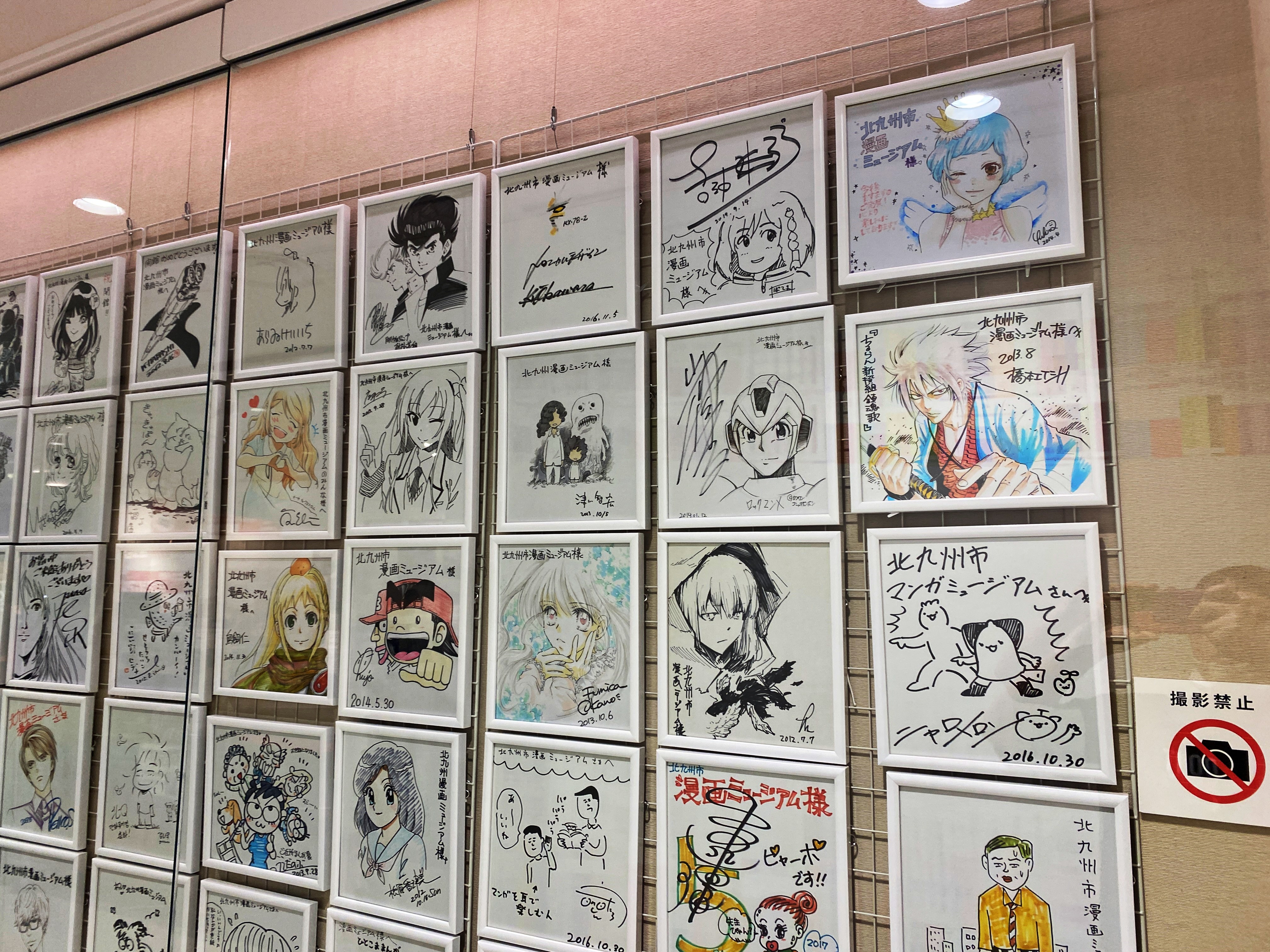 박물관 한편에는 다양한 만화가들의 친필 싸인과 그림이 걸려있었네요.