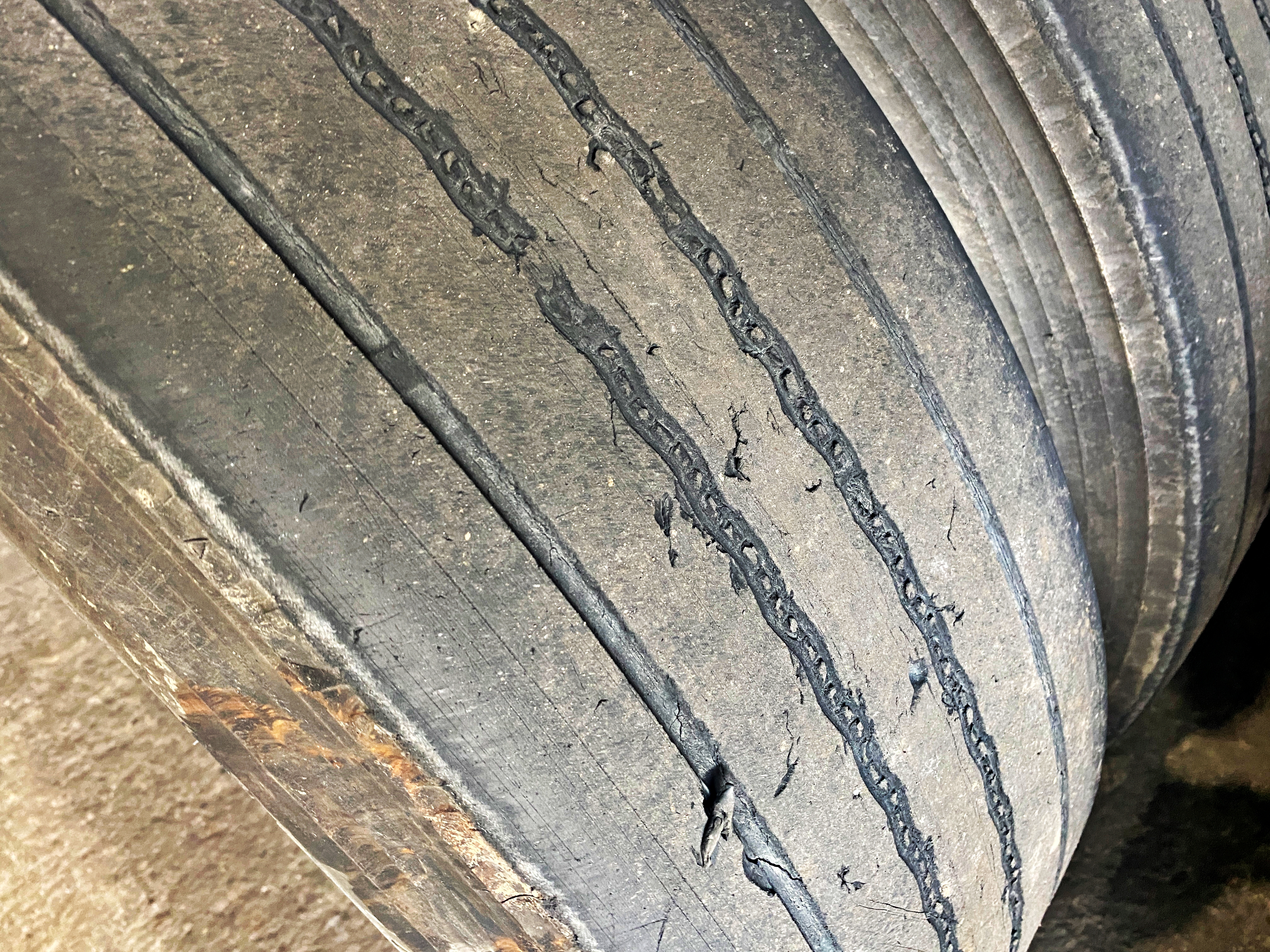 여름입니다. 승용차 타이어도 겨울 대비 더 많이 닳긴 하지만, 대형 화물차의 타이어는 승용차의 수십 배에 달하는 하중을 버티다 보니 닳는 모습이 눈에 보일 정도로 타이어가 마모되는 속도가 빠릅니다. 그래서 저의 경우 여름과 겨울을 주기로 다 닳은 타이어를 교체하곤 하는데, 신차 출고 당시부터 지금껏 사용했던 5축 타이어. 특히 바깥쪽 타이어의 마모가 심해져 교체했습니다.