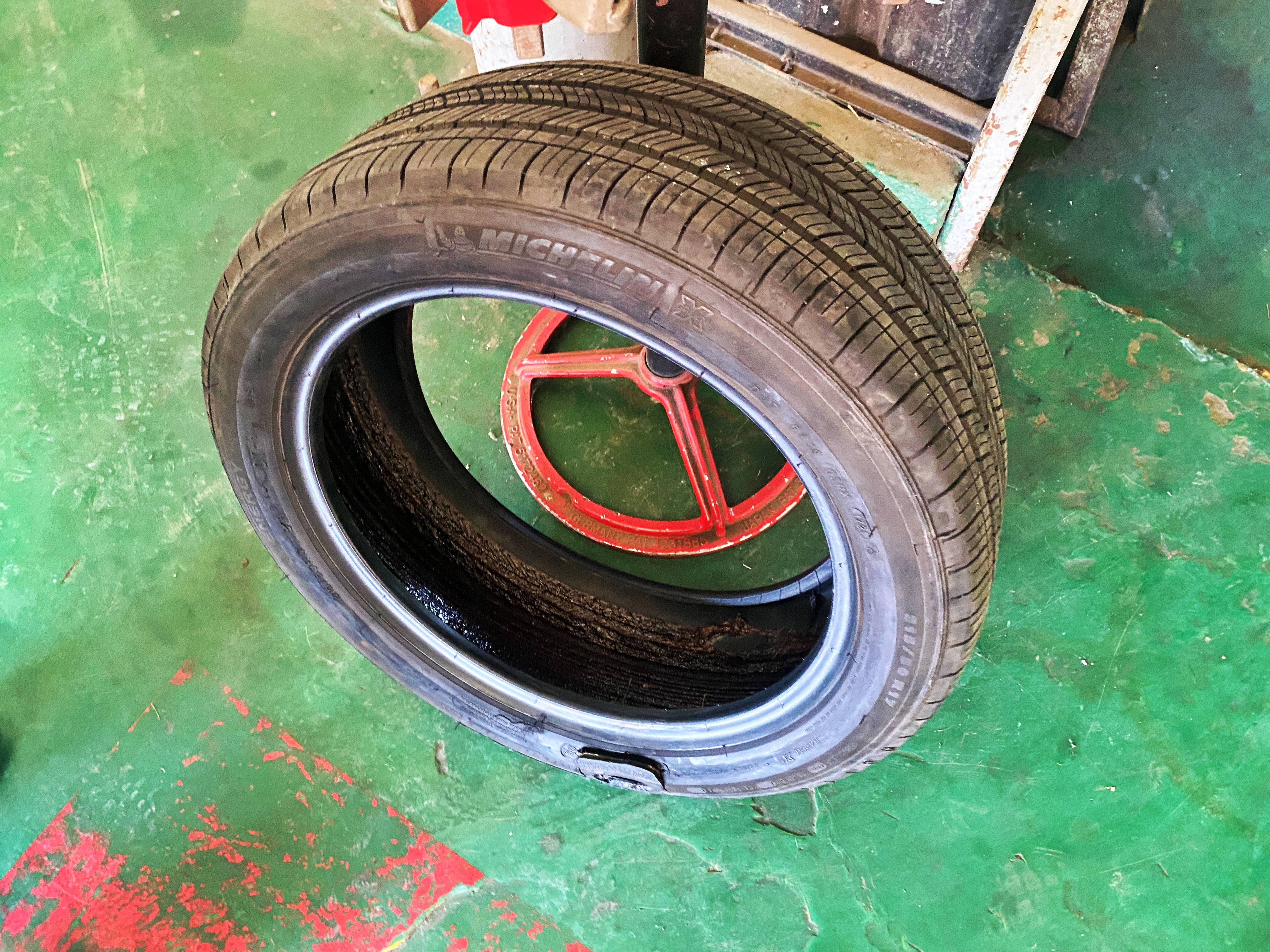 다 찢어진 타이어도 깨져버린 휠에서 탈착 되었습니다.
