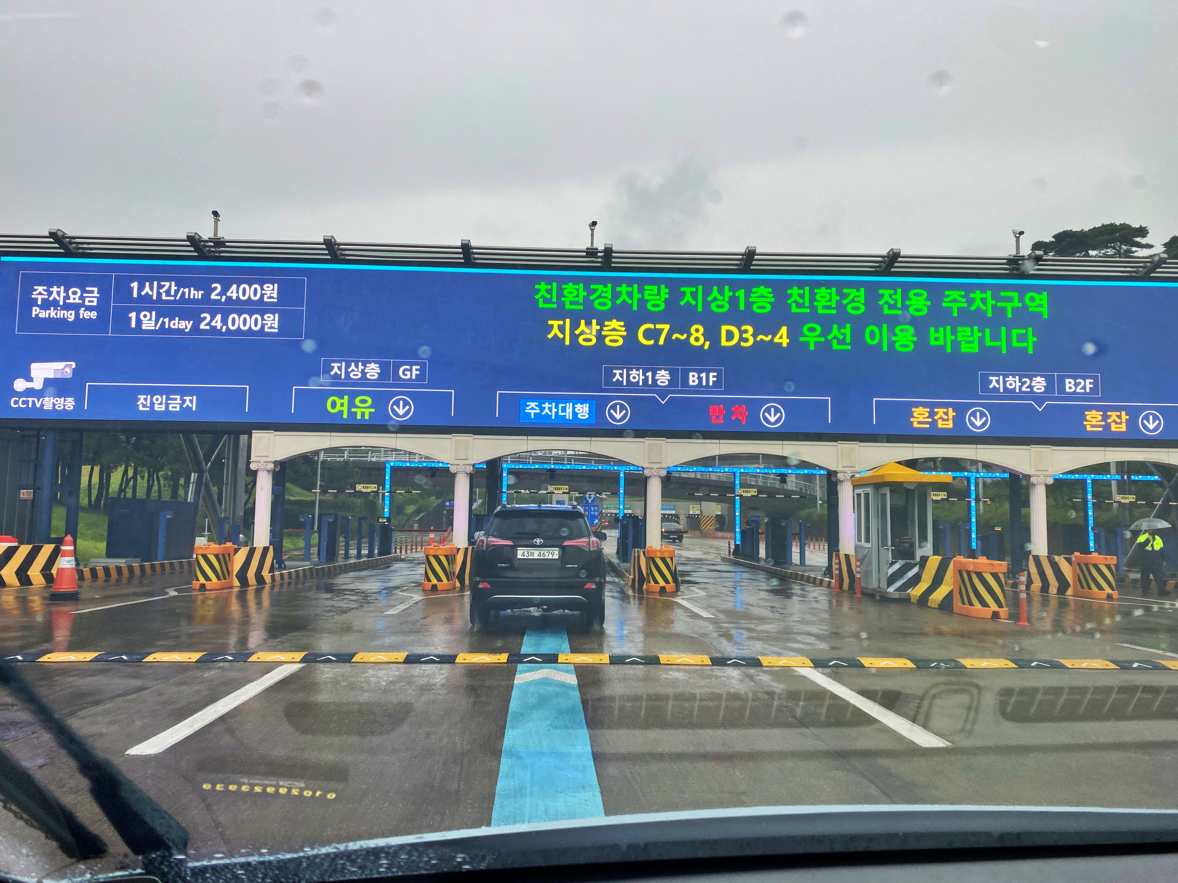 주차대행 역시 포화상태라 이미 오래전 예약을 마친 차량이 아니곤 받지 않는다고 합니다. 저 앞의 RAV4 역시 허탕을 치고 나왔습니다. 비록 2박 3일 여행이지만 하루에 24,000원. 전기차라 할인을 받더라도 12,000원 수준의 주차비는 아깝기에 차를 돌려 장기주차장으로 갔는데... 장기주차장도 죄다 만차입니다.