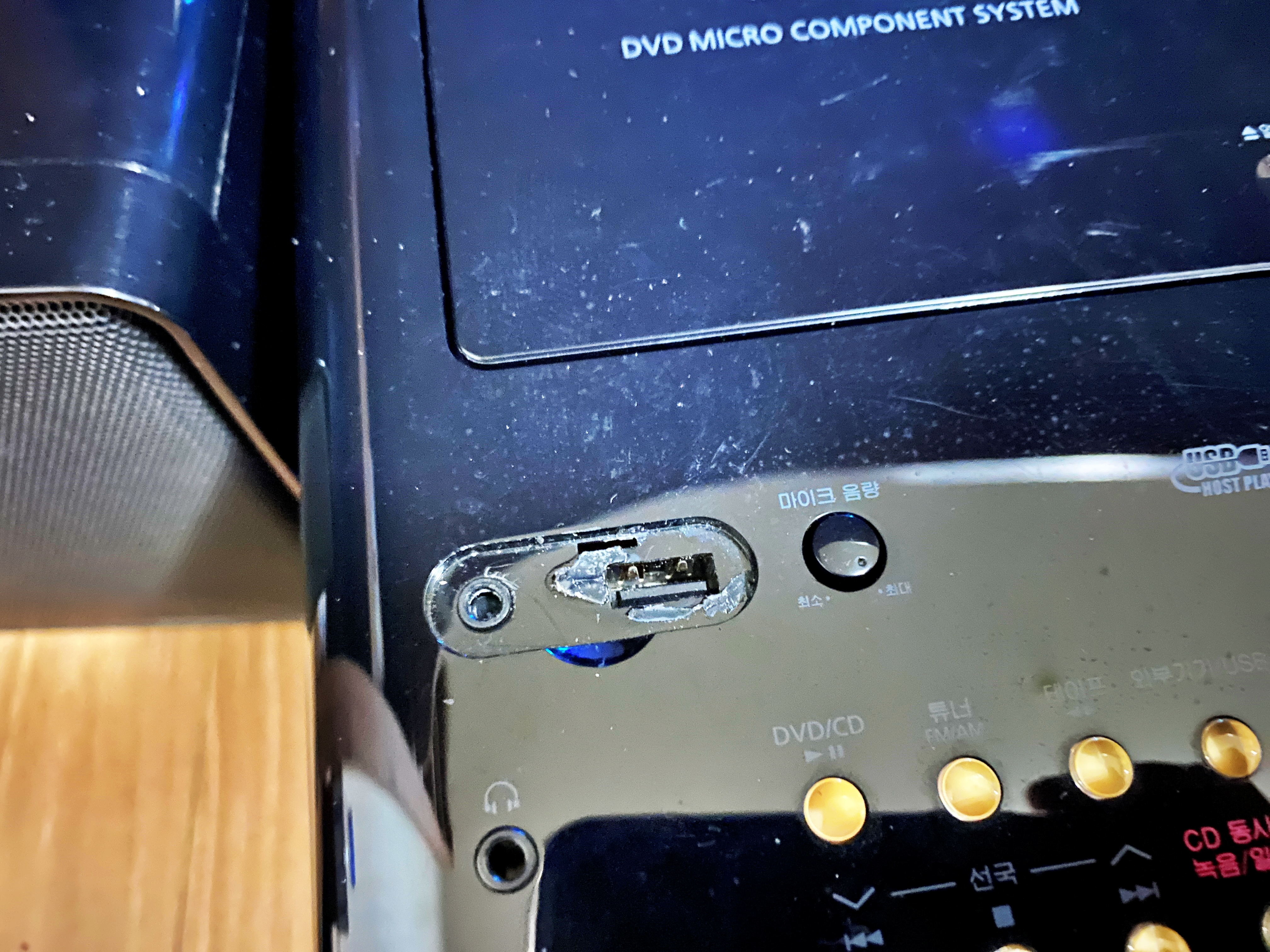 그래서 곡 순서대로 시간분배를 잘해서 약 60분 분량의 음원파일을 USB에 넣고 컴포넌트에 연결했습니다. 요즘 음원파일들이 앨범아트나 태그가 많아 용량이 큰 편이라 필립스 컴포넌트는 일부 파일을 읽지 못하는 문제가 있었는데, 이 삼성 컴포넌트는 문제없이 잘 읽습니다. 그렇게 모든 준비가 끝났습니다.