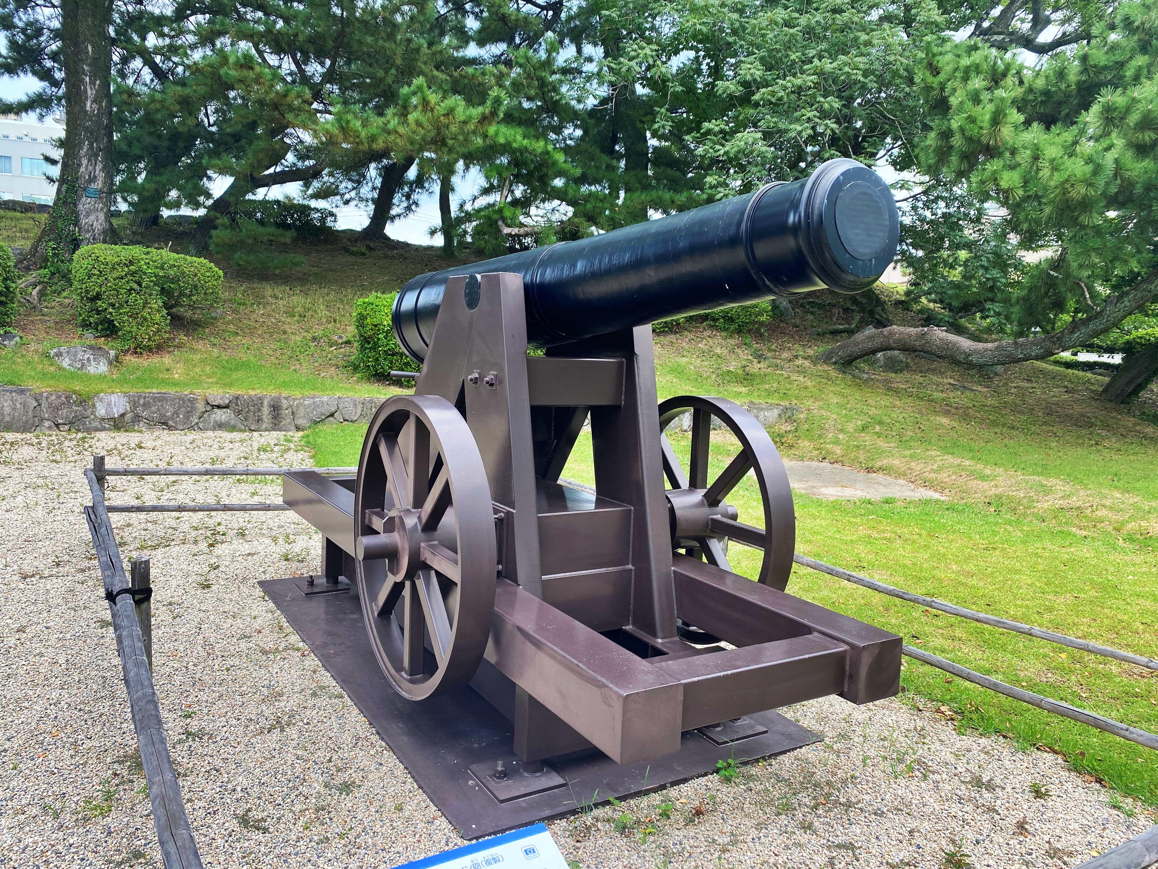 당연히 근래 복원한 물건이고요. 사가성의 주인이던 10대 번주 나베시마 나오마사가 일본에서 최초로 철제 대포를 주조한 일을 기념하기 위해 가져다 두었다고 합니다만, 이 캐논포는 도쿄에 있는 나베시마 저택에 놓여있던 미국에서 수입된 물건을 복제한 것이라 합니다.