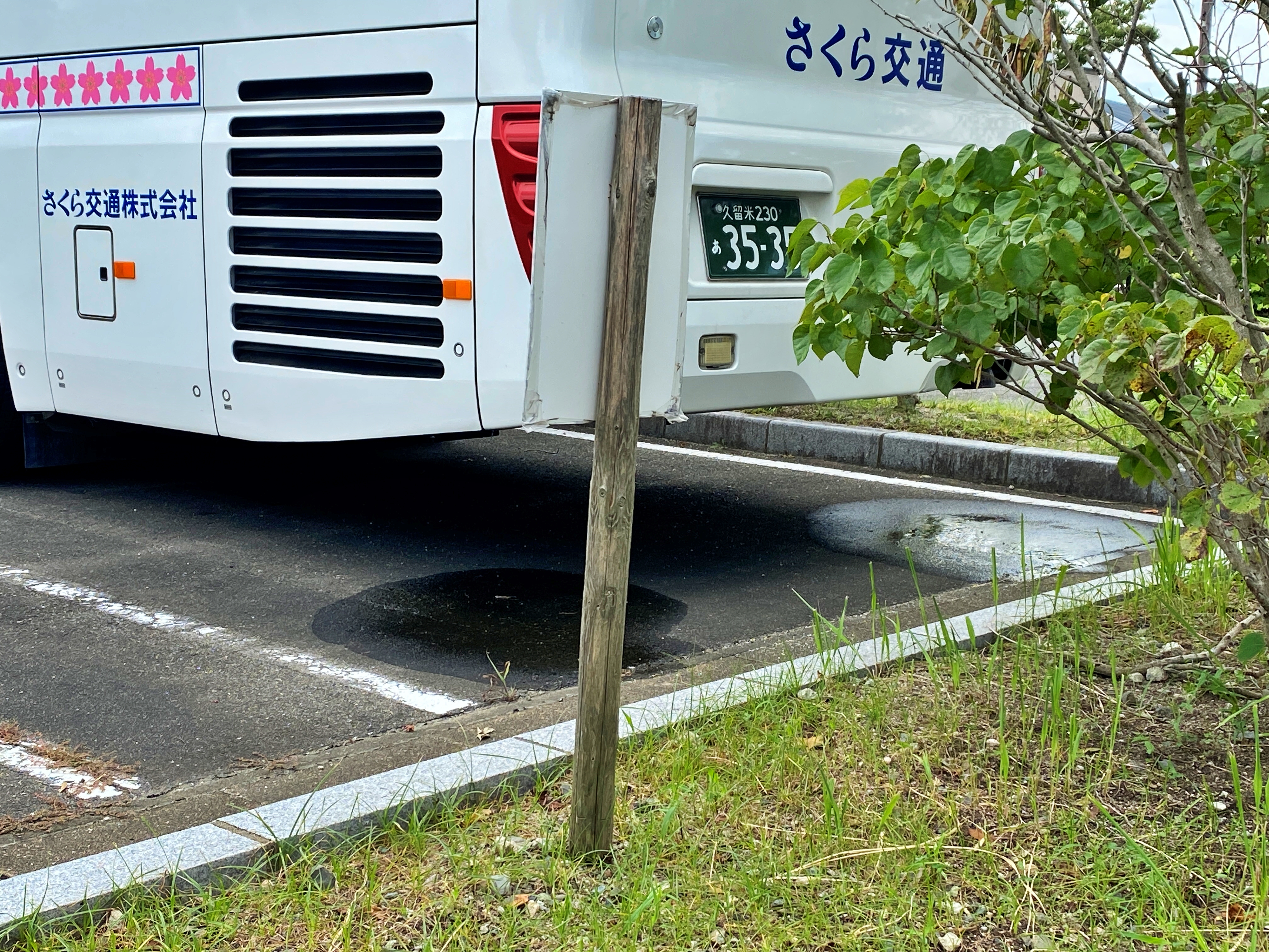 사쿠라교통의 관광버스가 공회전을 하며 에어컨을 풀가동 하고 있습니다.