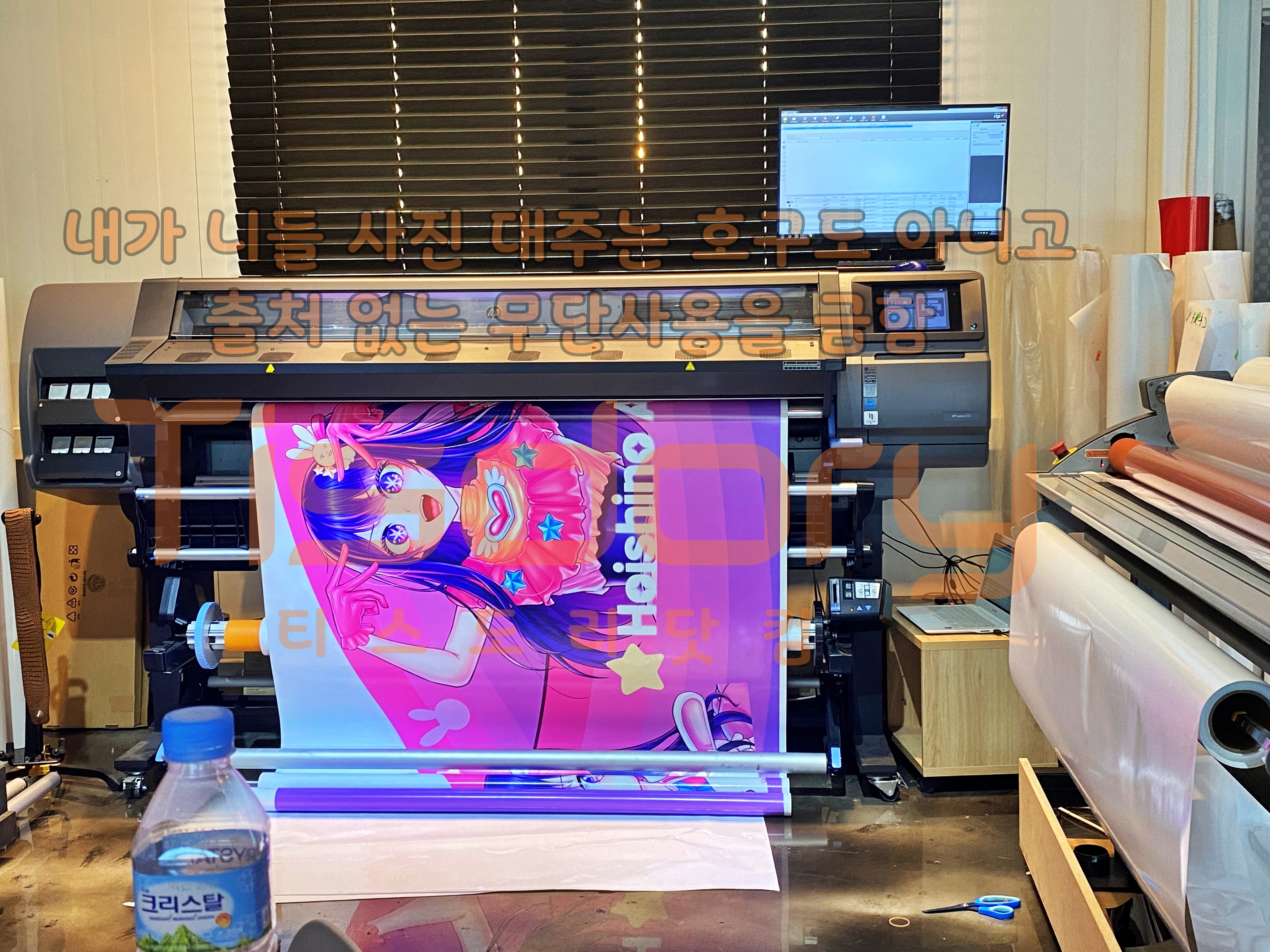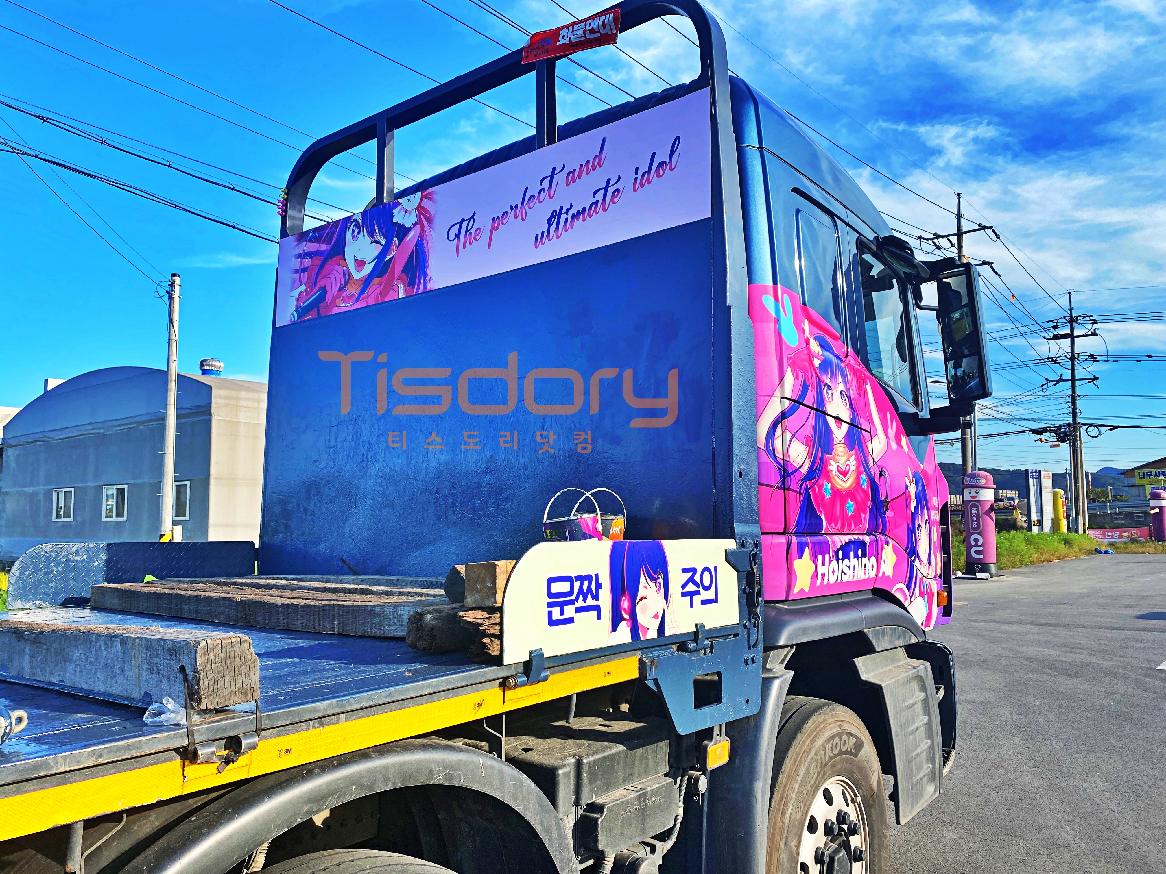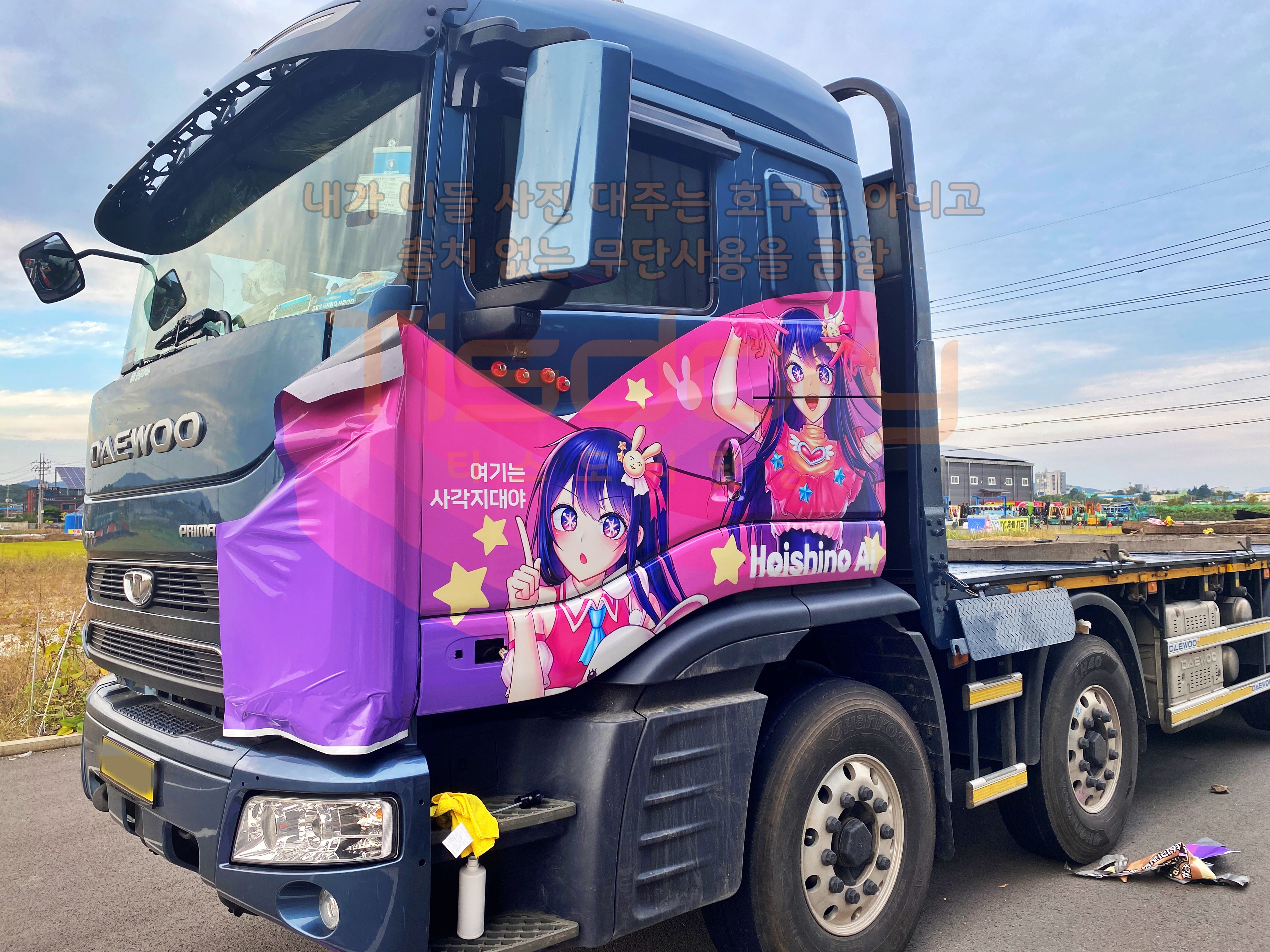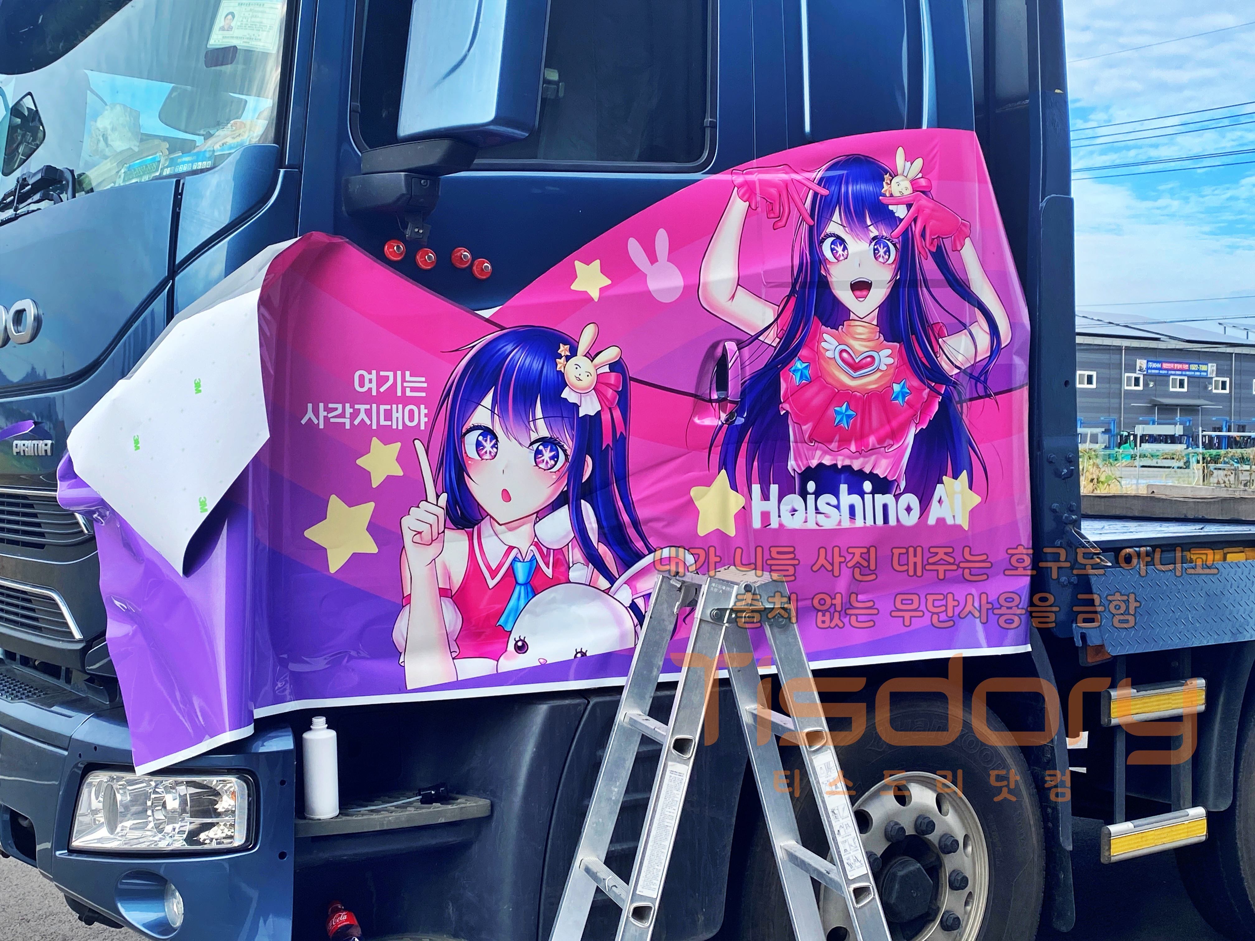 적재함 벽면에 들어갈 호시노 아이와 전면부에 랩핑 할 컬러가 출력되고 있습니다.
