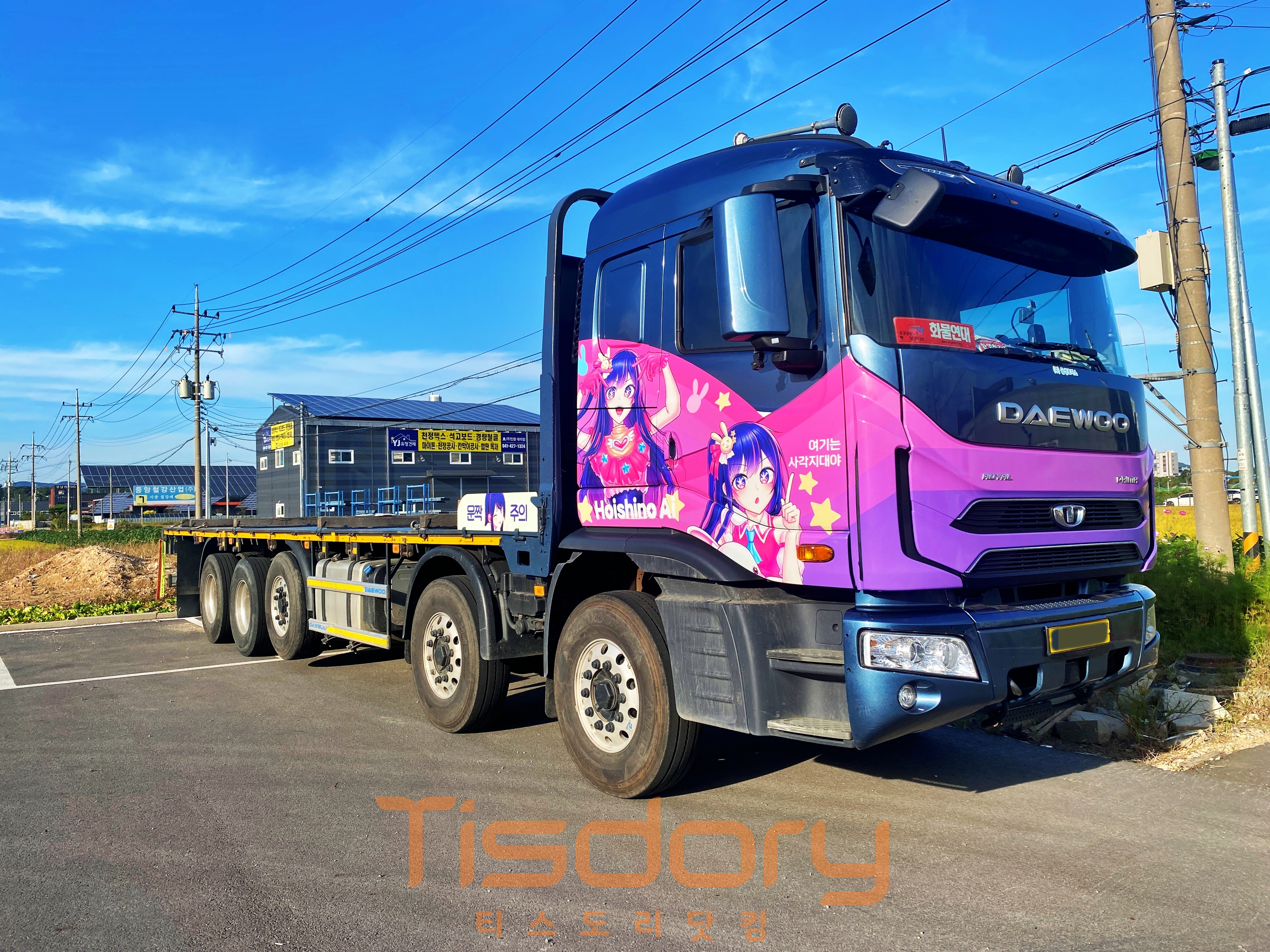 적재함 벽면에 붙을 문구입니다. 완벽한 궁극의 아이돌. 완벽한 궁극의 아이돌과 함께 하니 요즘 일도 생각 이상으로 잘 풀립니다.