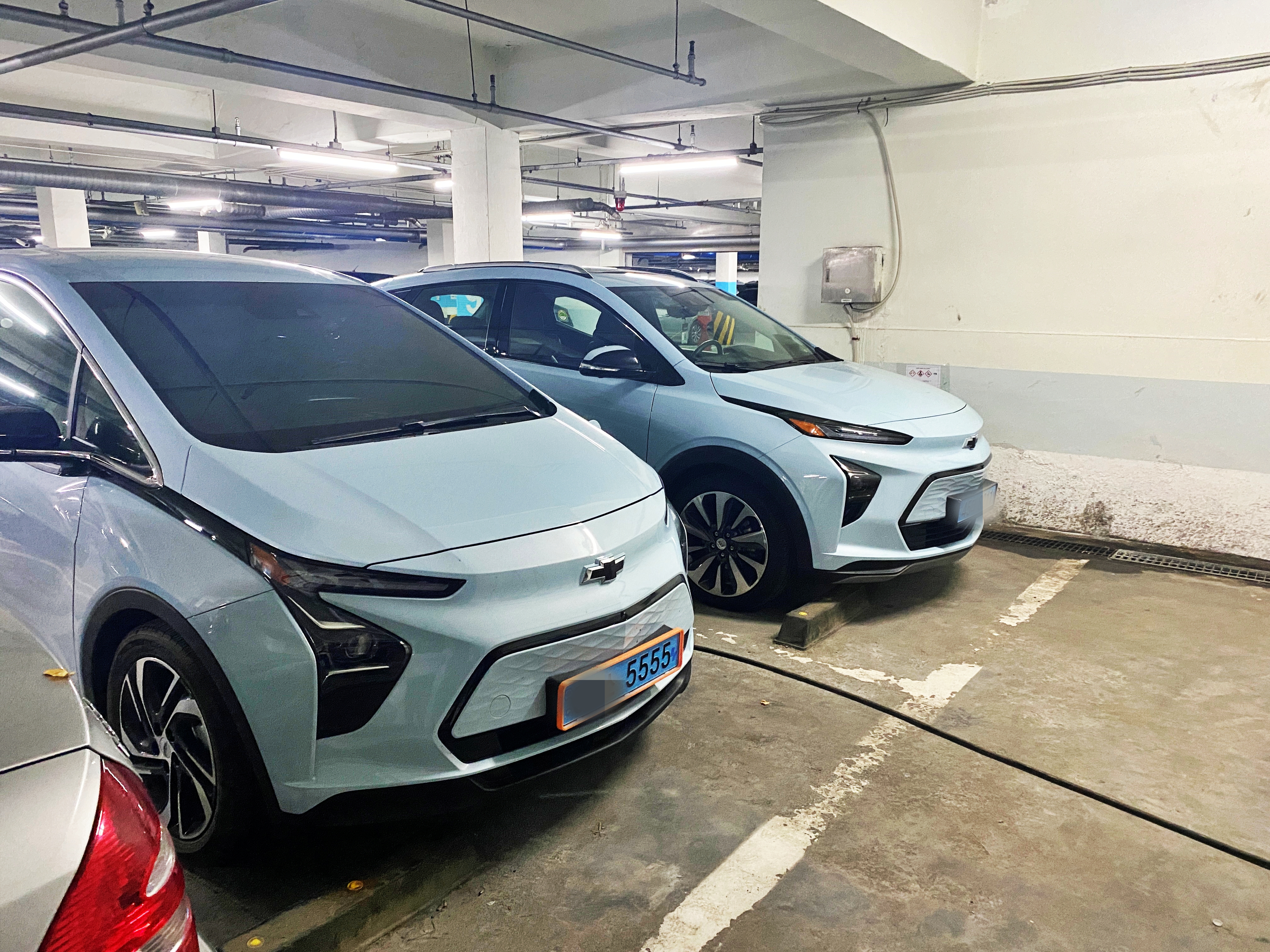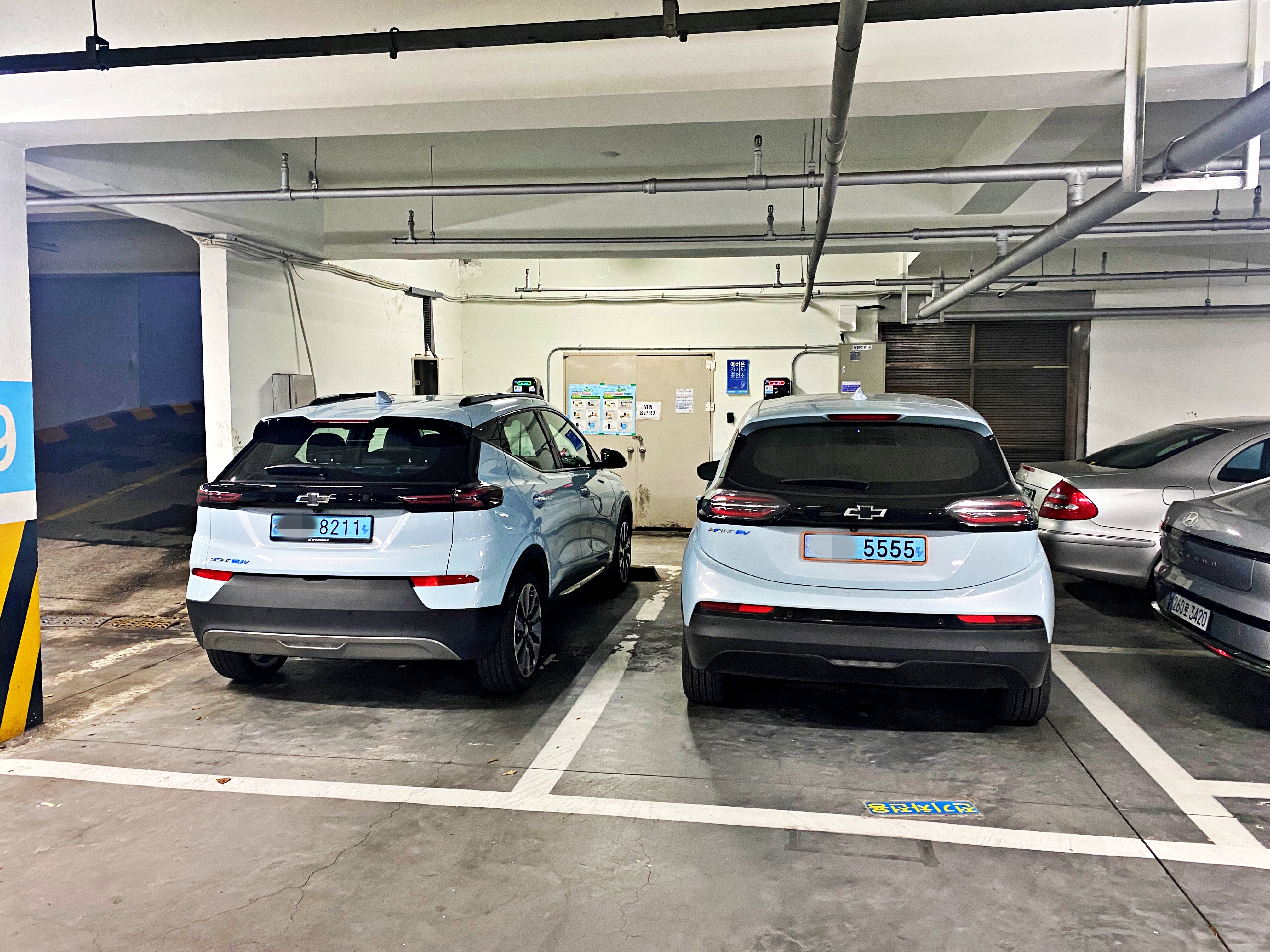 미국산 대우 전기차 두대를 나란히 세우고 봅니다.