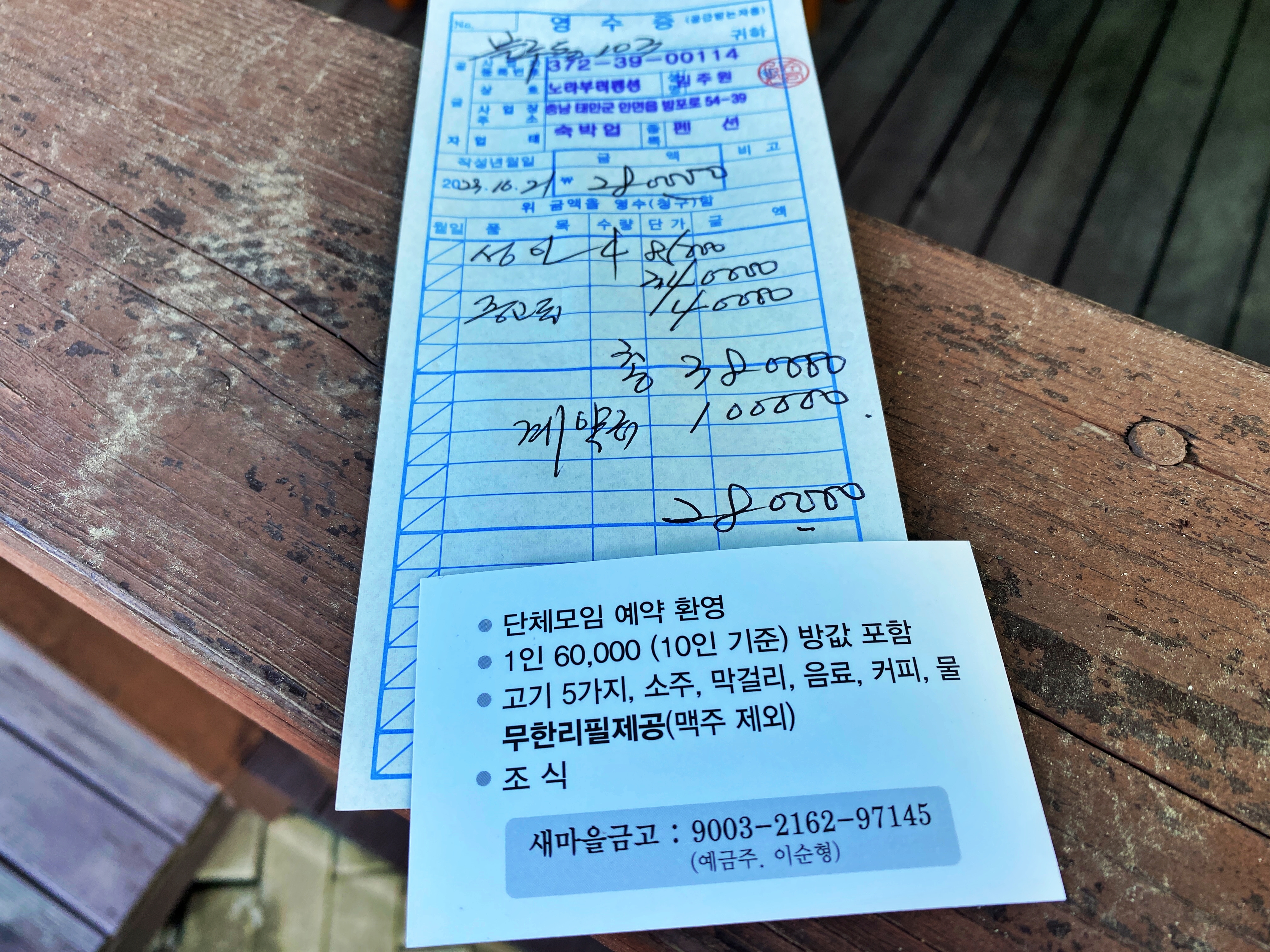 애초에 인원이 별로 없을 거라 생각하여 여섯 명 정도를 예약했고, 숙박 세명에 당일치기 두 명까지 총 다섯 명이 모였습니다. 시간이 되면 참석하겠다고 하셨던 회원님들이 계셨으나 아쉽게도 부득이하게 참석하지 못하셨네요. 이 펜션을 방문했던 2021년 전국정모를 기점으로 지난해 유스호스텔도 그렇고 직접 장을 보고 뒷정리까지 하는 펜션이나 민박집 대신 식당을 가거나 알아서 밥을 주는 곳으로 다니고 있습니다. 내내 장을 보며 들어가는 비용이나 숙박업소에 좀 더 주는 비용이나 큰 차이가 없습니다.