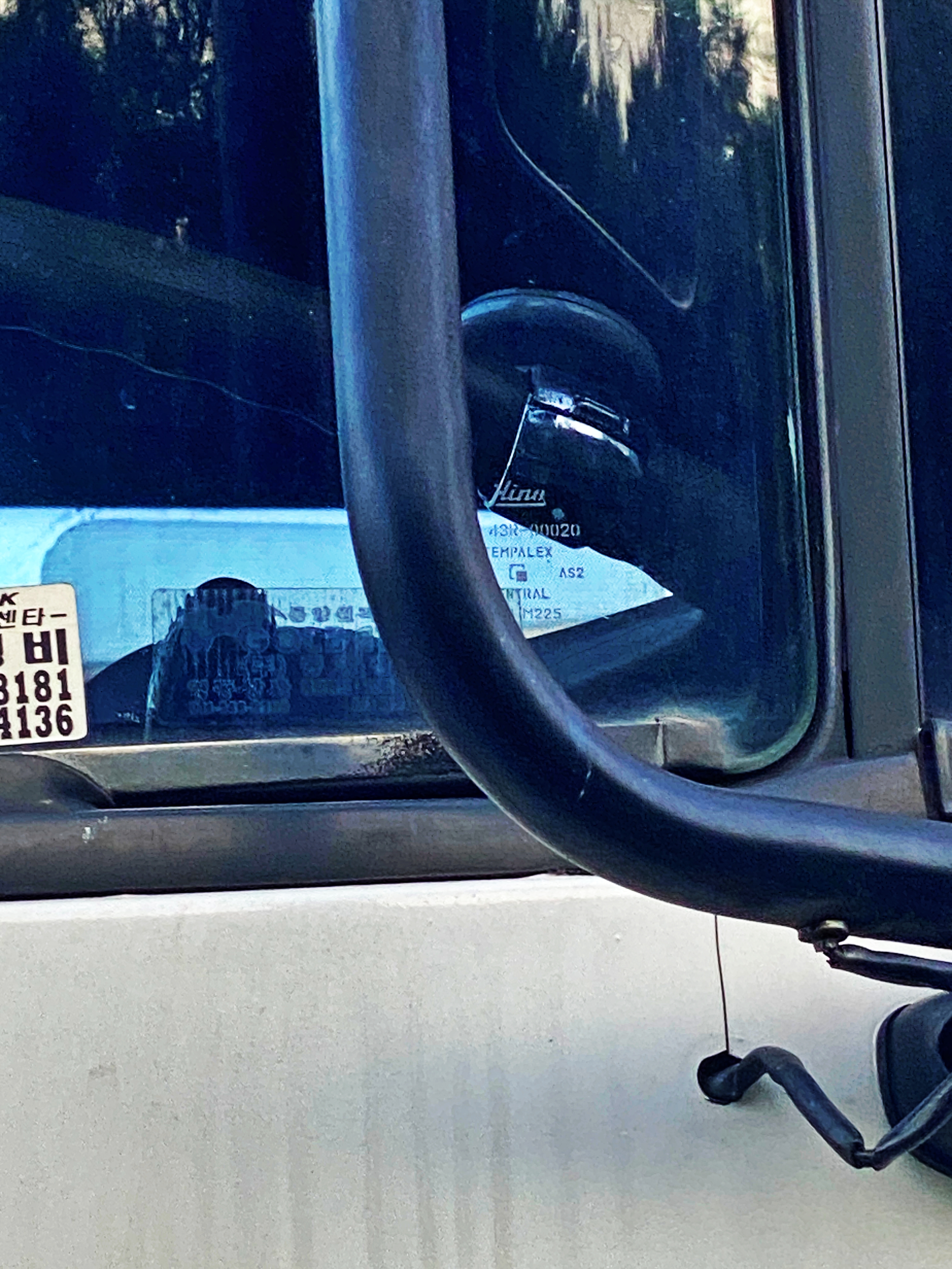 한번 교체를 했는지 아님 수출나갈 차량에 조립될 물건이 내수용 차량에 조립되었는지는 모르겠습니다만, 히노 로고가 찍혀있는 유리창도 잘 붙어있습니다.