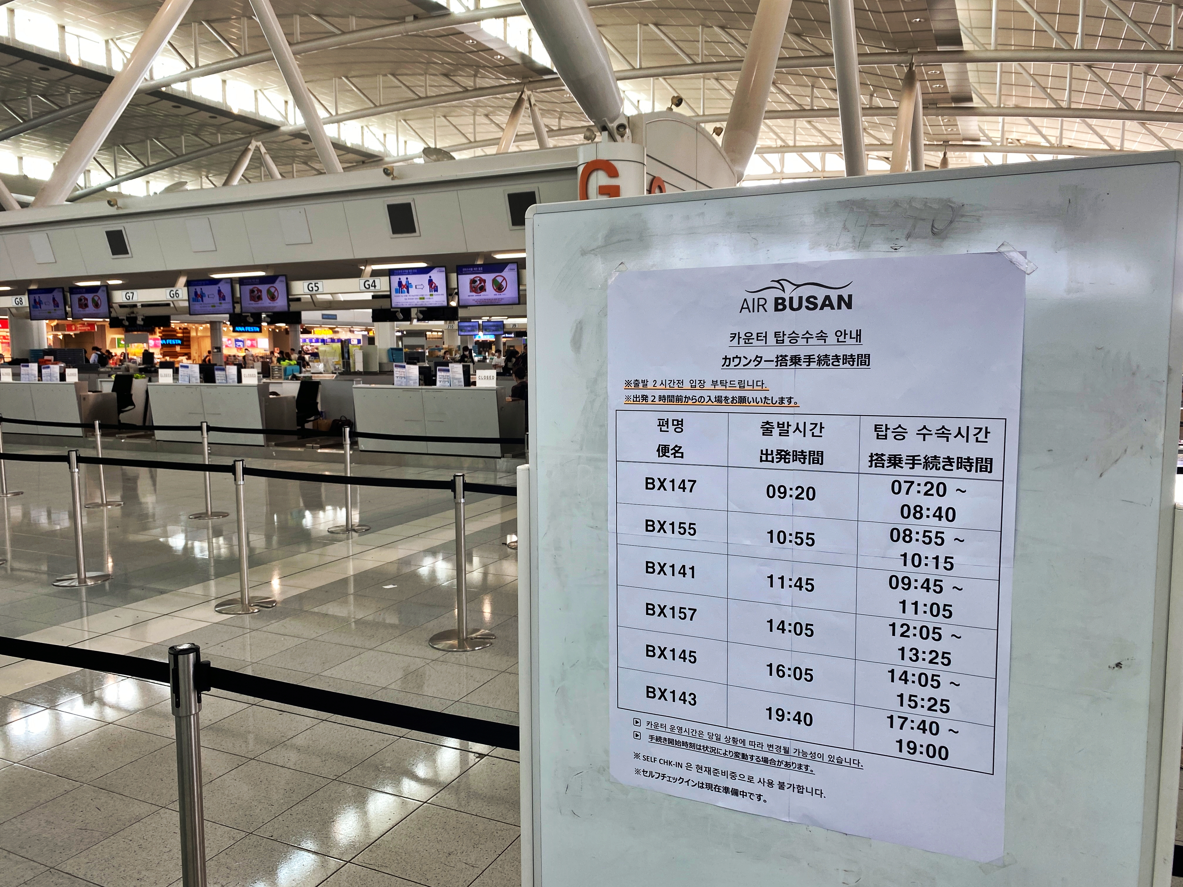 에어부산 카운터의 탑승수속 시간입니다.