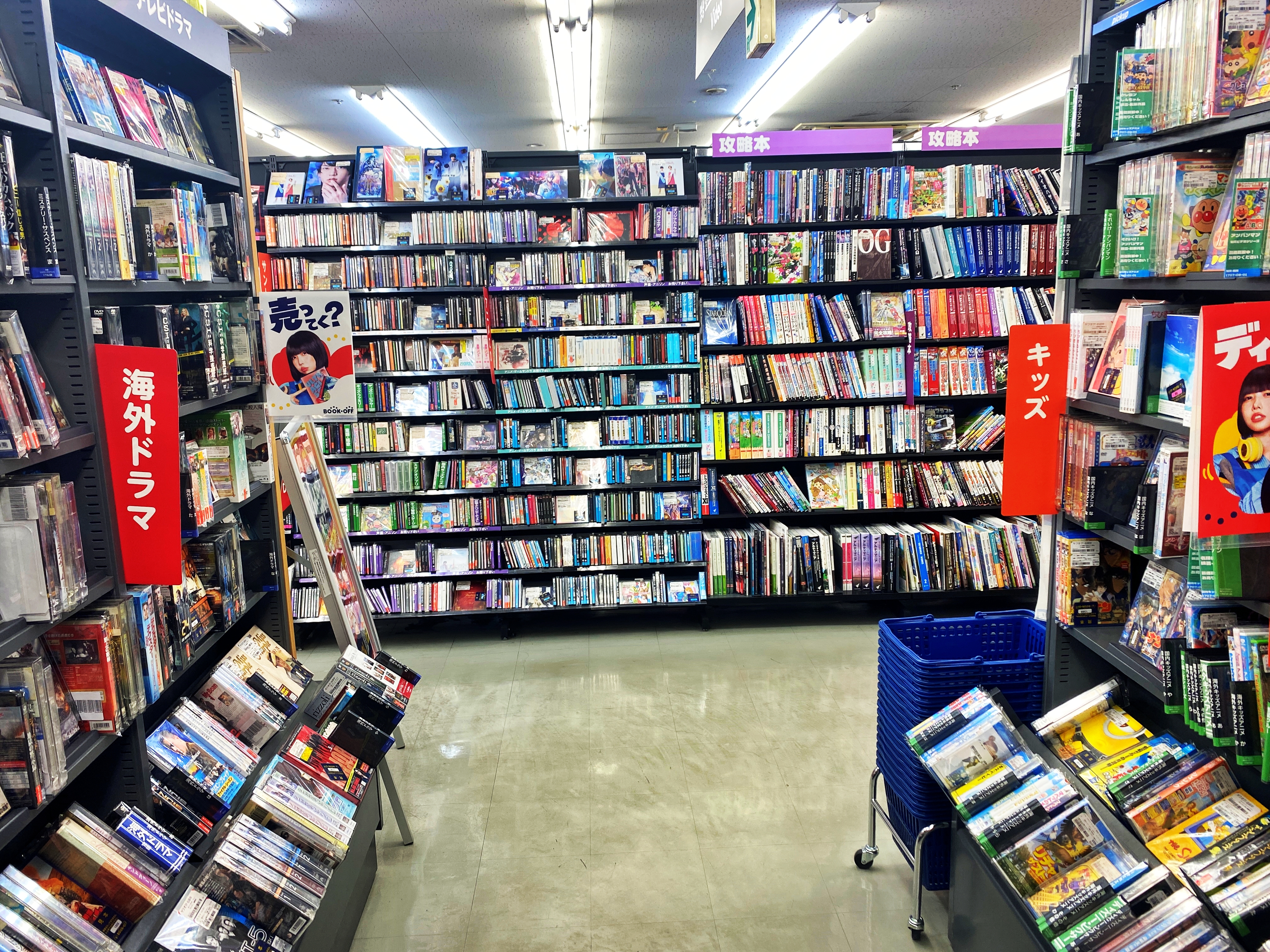 우리나라에도 알라딘 중고서점이 있긴 합니다만, 몇몇 대도시에 지점이 있을 뿐 북오프처럼 도심에는 곳곳에, 시골에도 한두 개쯤은 볼 수 있는 이런 전국망을 갖추지도 못했고 그럴만한 수요도 나오지 않아 한국에선 앞으로도 볼 수 없으리라 생각됩니다.