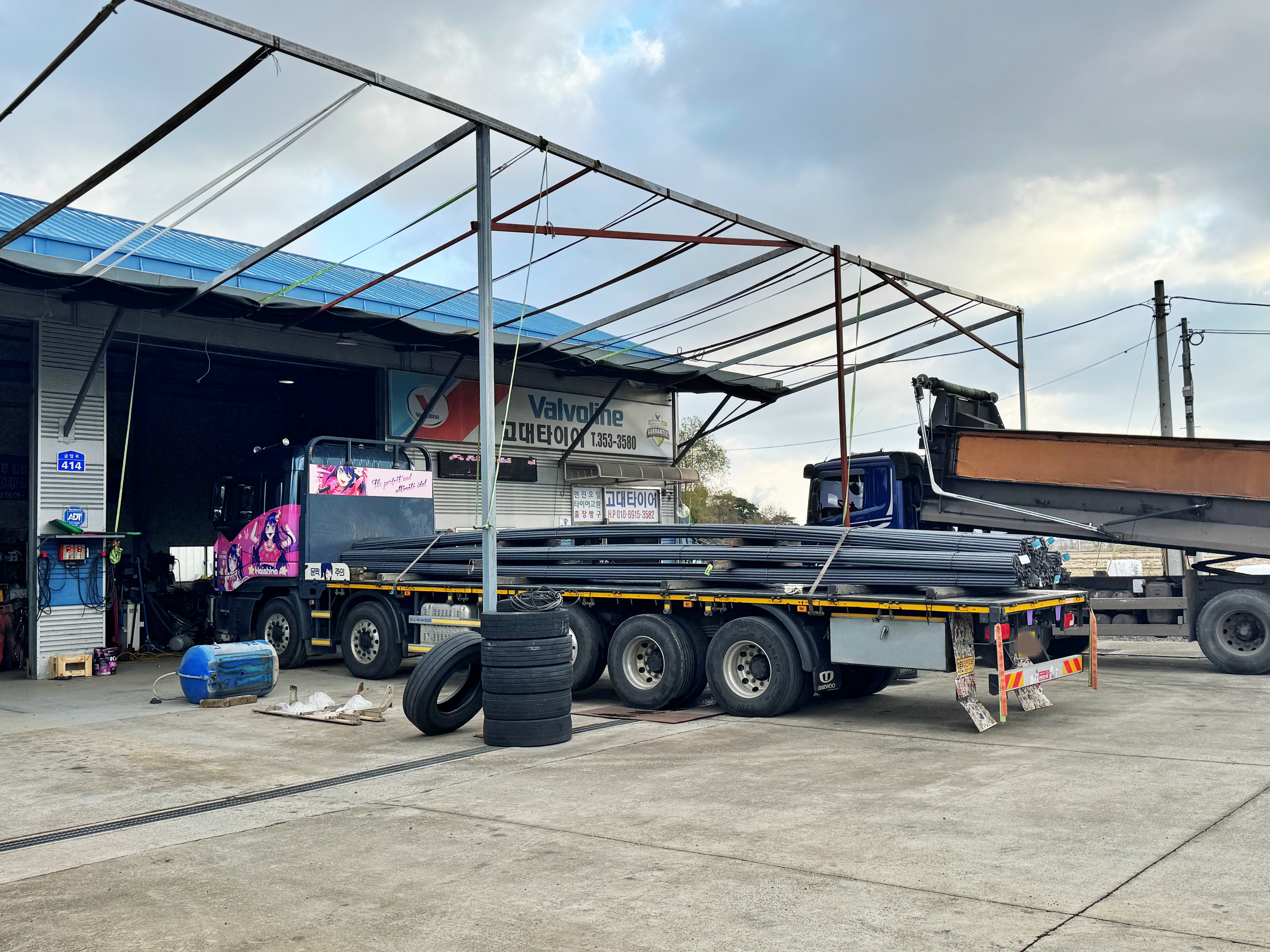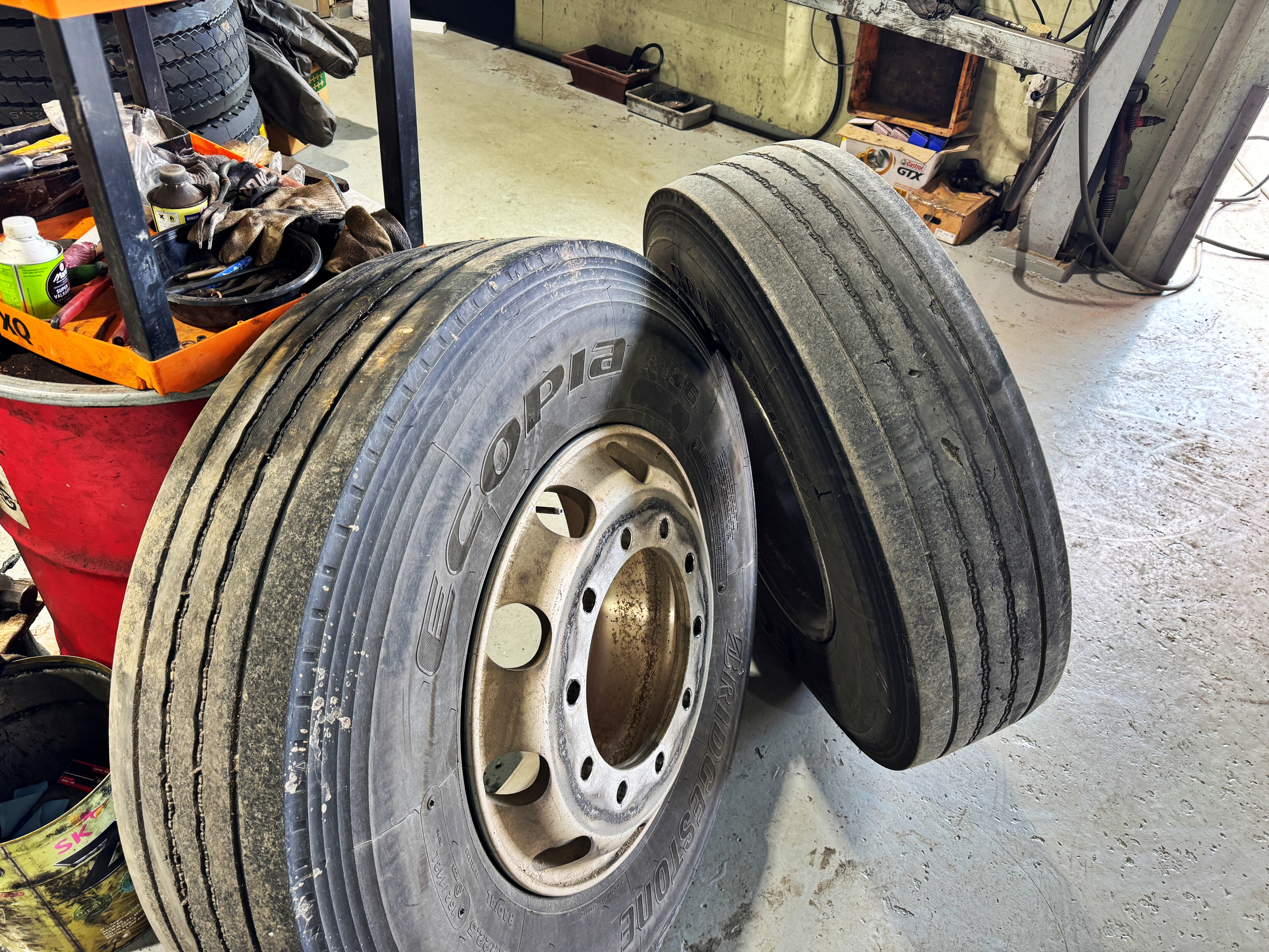 사실상 파업이 끝났던 지난주 금요일. 편마모를 먹던 1축, 2축 타이어를 교체했습니다. 1축은 엄청 많이 남아있고, 2축도 거의 4~50% 남아있습니다만, 편마모를 심하게 먹어 바꿔주고 얼라인먼트를