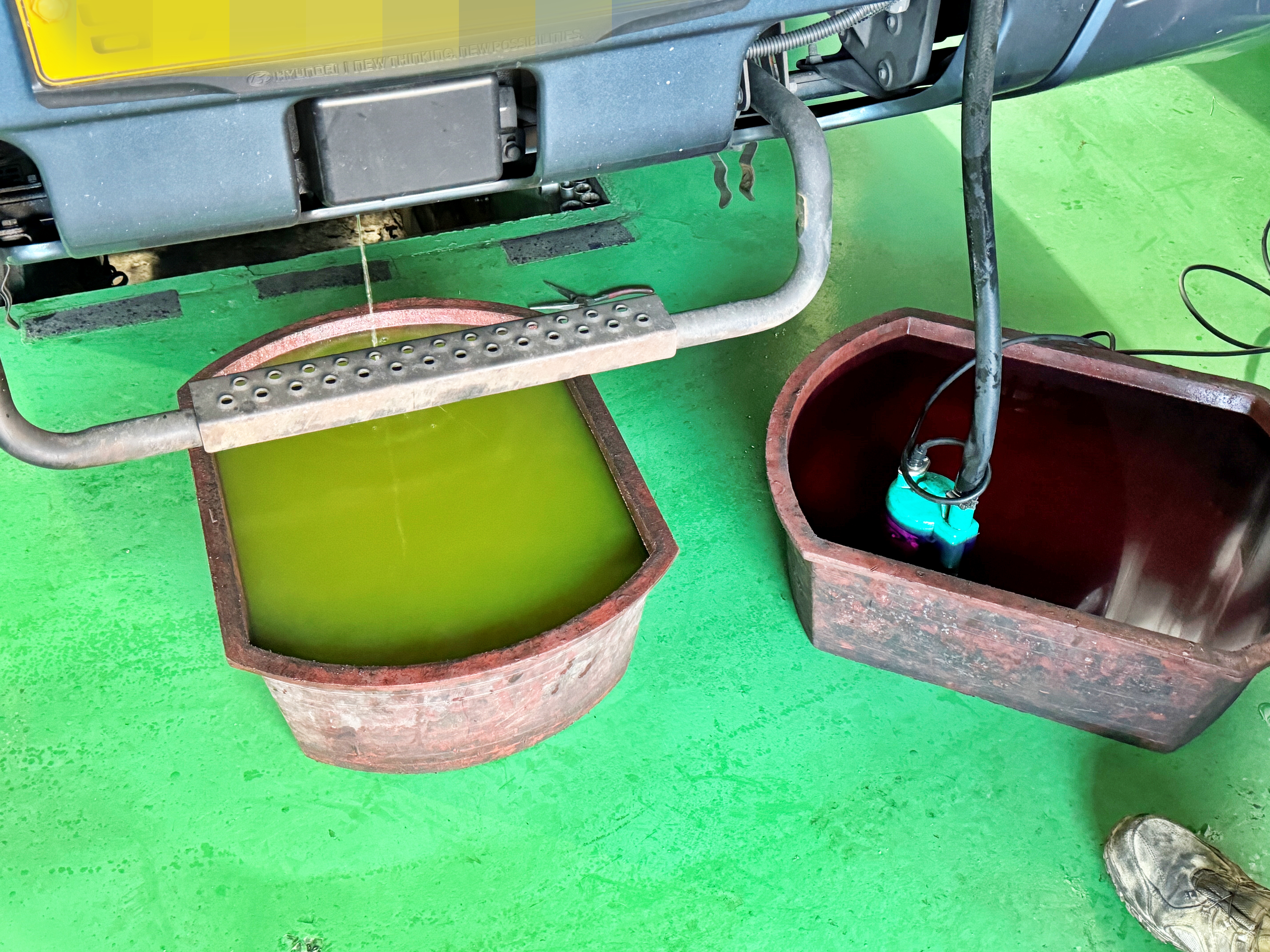 녹색 냉각수인데 통이 영 깔끔하지 않은지라 색이 엄청 더러워 보입니다. 그래서 엄청 더럽겠거니 생각했지만 다 빼고 보니 그렇게까진 더럽지 않더군요. 냉각수의 양도 많다보니 배출되는 시간도 오래 걸립니다. 배출에만 20여분 가까이 걸렸네요.