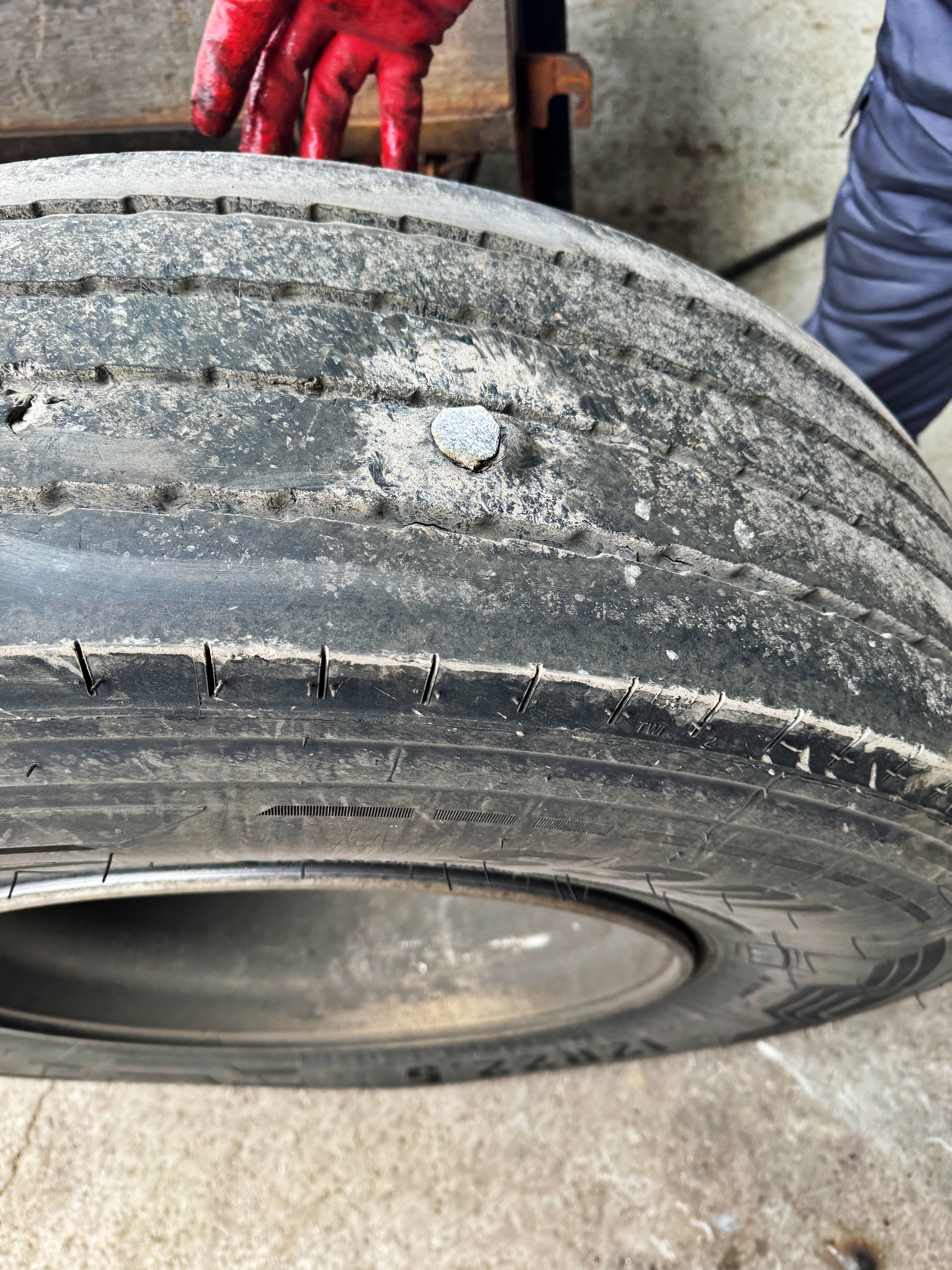 승용차 타이어에 박는 지렁이를 화물차 타이어에 박은건 처음 봅니다.