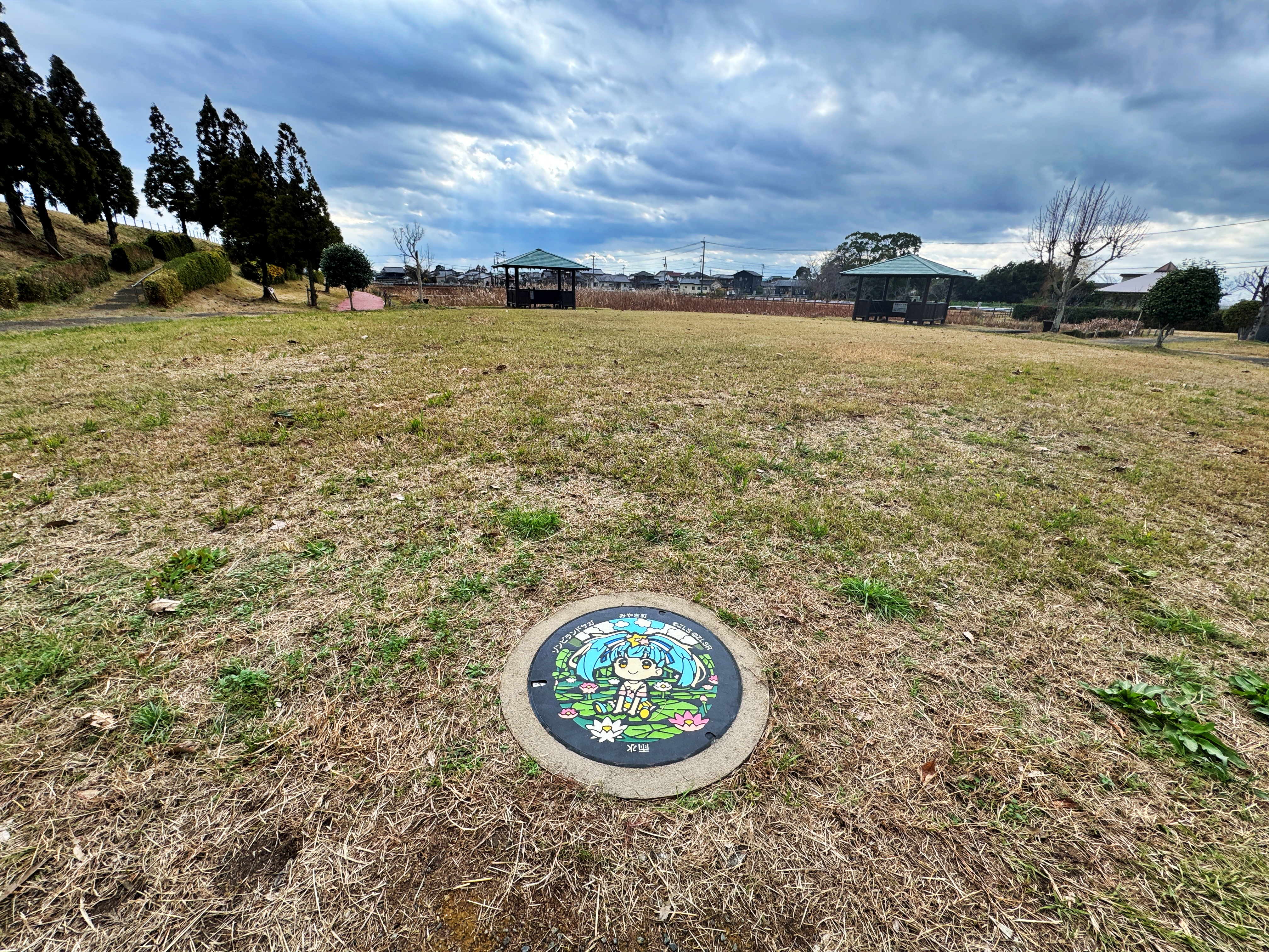 배경은 사가현 유일 신칸센 정차역인 신토스역. 그리고 신칸센 위로 보이는 녹색 새는 토스시의 마스코트 캐릭터인 톳토쨩(とっとちゃん)이라고 합니다. 그리고 구글 스트리트뷰를 확인하니 맨홀 뚜껑만 가져다 놓은 게 아니라 실제 오수가 흘러가는 맨홀입니다. 기존 맨홀뚜껑을 이 뚜껑으로 교체했다고 합니다. 이전 두 건의 맨홀에는 용도가 적혀있지 않았지만, 이 맨홀은 사용 용도가 적혀있네요. 용도가 적혀있지 않은 맨홀은 그냥 뚜껑만 설치해 둔 가짜 맨홀이라 합니다.