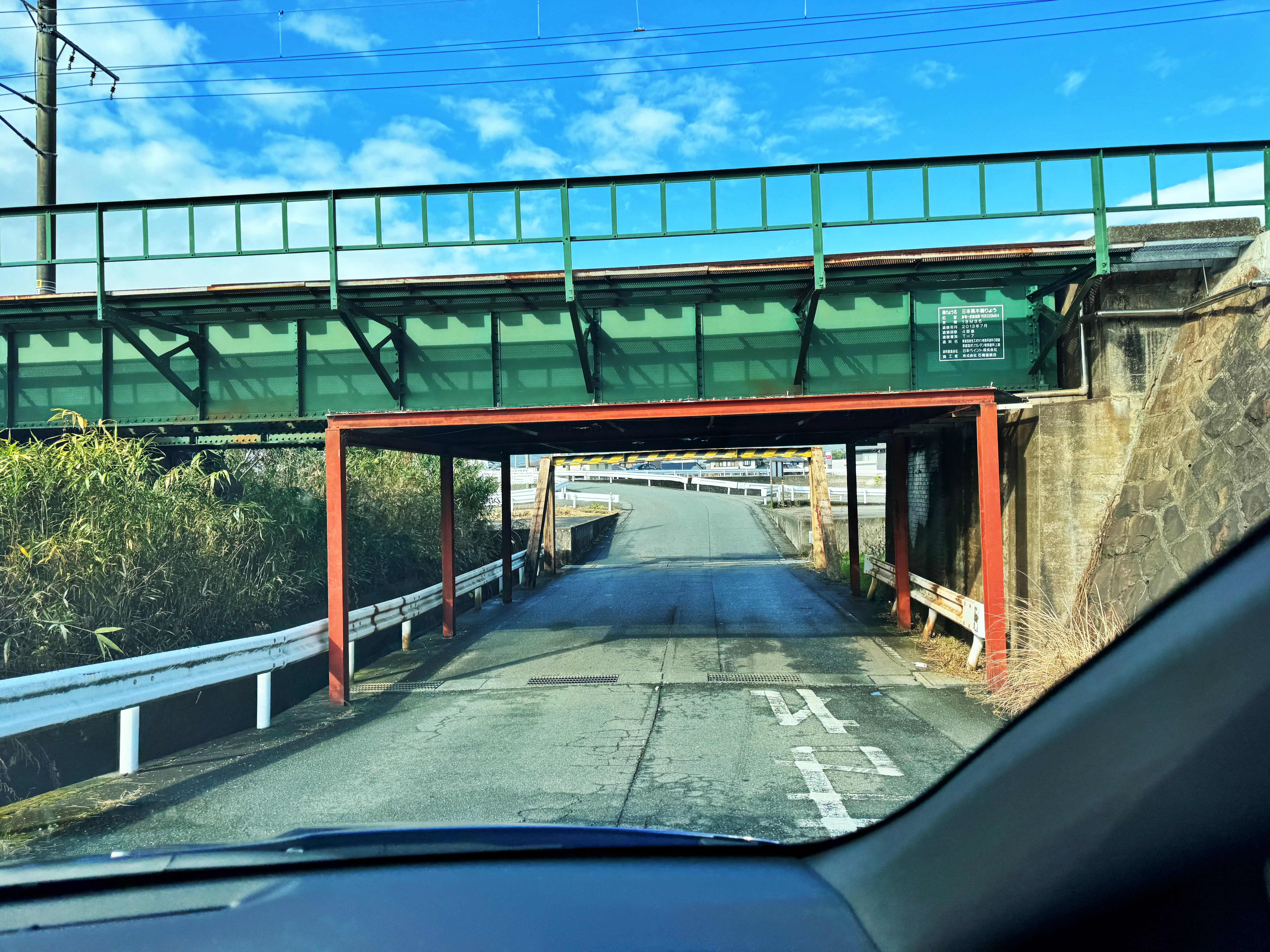좁은 골목길을 타고 나가야 하네요. 좁은 골목길에 교행까지 해야 하는 도로가 있음에도 다들 순서를 지켜가며 횡단합니다. 작은 다리를 건너서 나가사키선 철도 아래를 통과해야 하는군요.