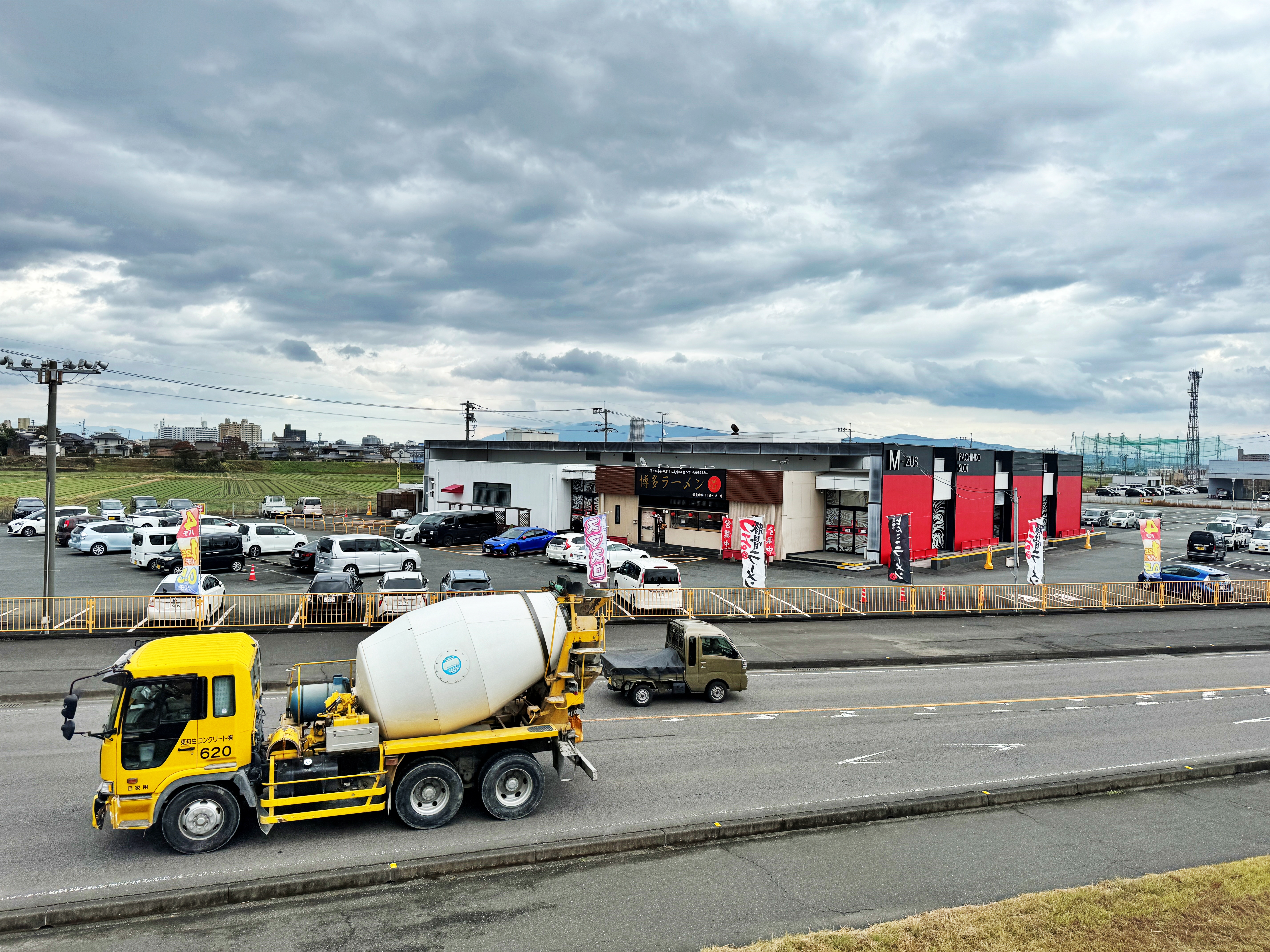 사가현도 22호선이 지나고 주변으로 쇼핑몰과 라멘집이 자리잡고 있습니다. 그냥 토성 느낌의 옛 제방 위에는 잔디만 심어져 있을 뿐 아무것도 없습니다.