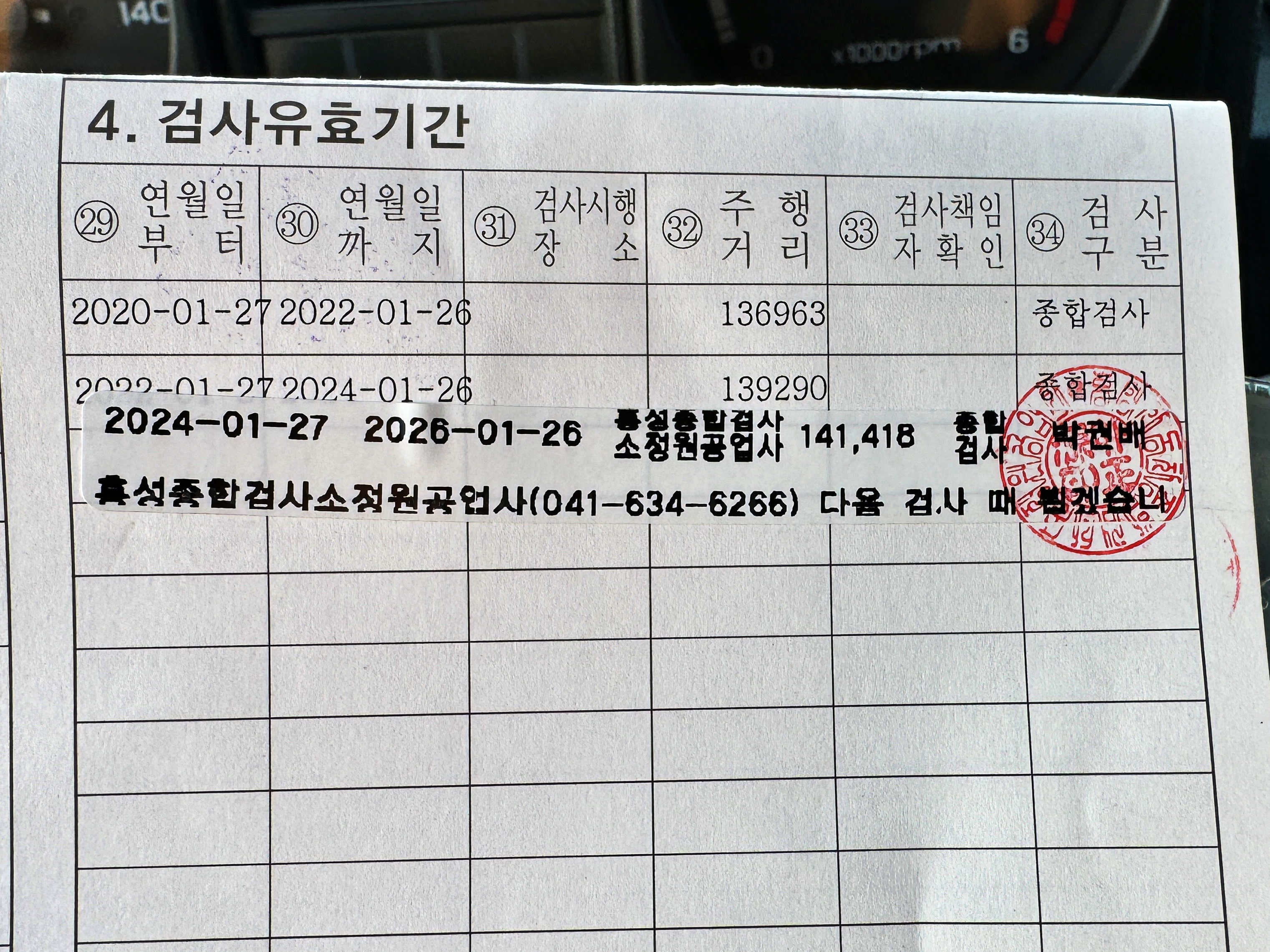 2년간 2,128km를 주행했습니다. 검사원 아저씨께서 차량 관리가 잘 됐다고 칭찬을 해주시네요. 다만 주기적으로 좀 밟아서 매연을 빼주고 다니라고 합니다. 매연이 최대 17%가 나왔다고 합니다. 하긴 뭐 시동만 걸어주고 타도 살살 타던 차라 어쩔 수 없는 부분이긴 합니다. 그거 말곤 크게 문제가 될 부분은 없다고 합니다.