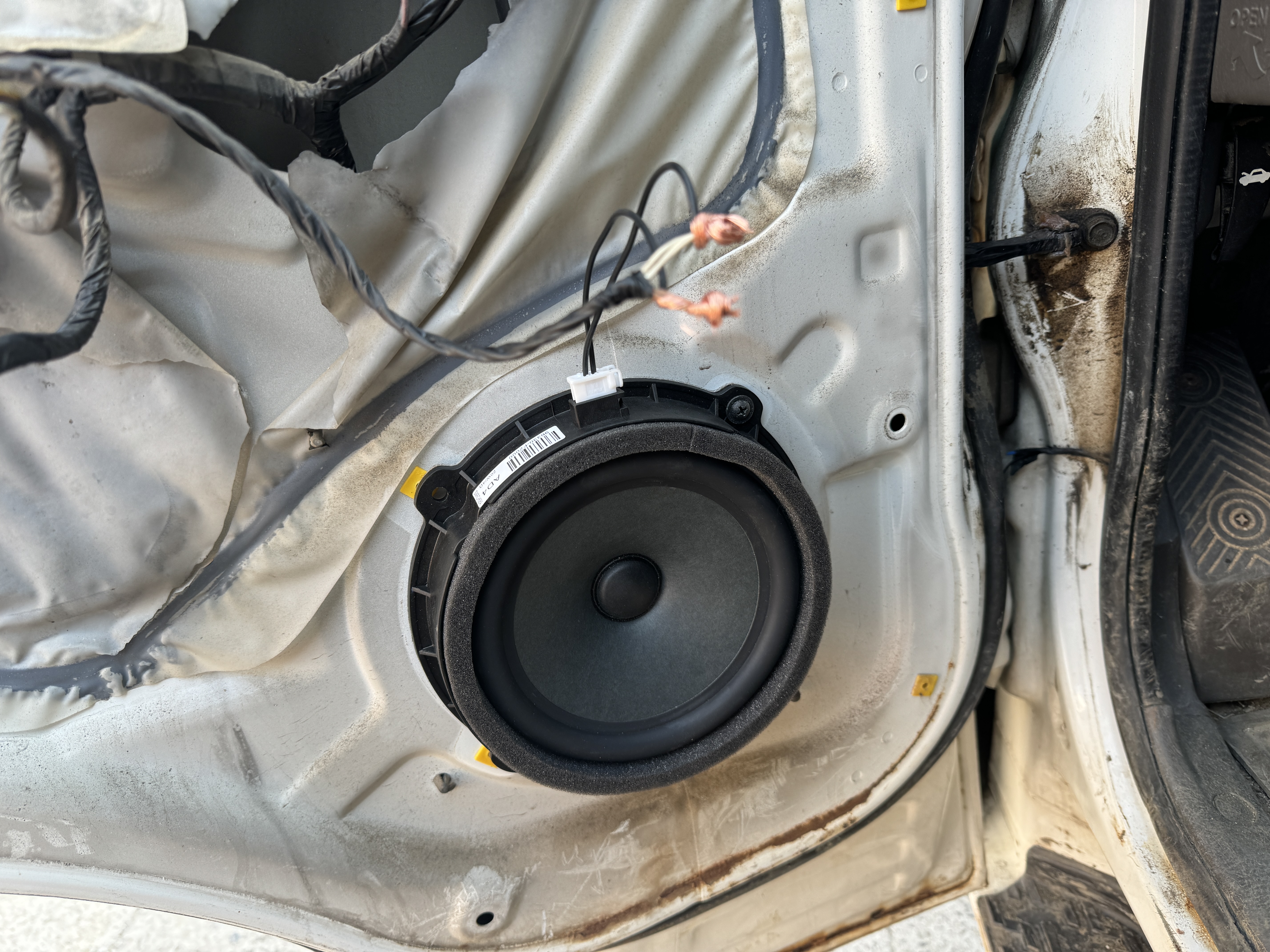 위에서 하나만 꽉 조여놓으면 그래도 고정은 잘 됩니다. 창고를 뒤져보면 방음패드 방진패드도 구석에 있을 텐데 마음 같아서는 방음패드 방진패드도 잔뜩 붙이고 싶습니다만 어차피 조기폐차를 보낼 차량에는 사치인지라 일단 스피커만 끼워주기로 합니다.