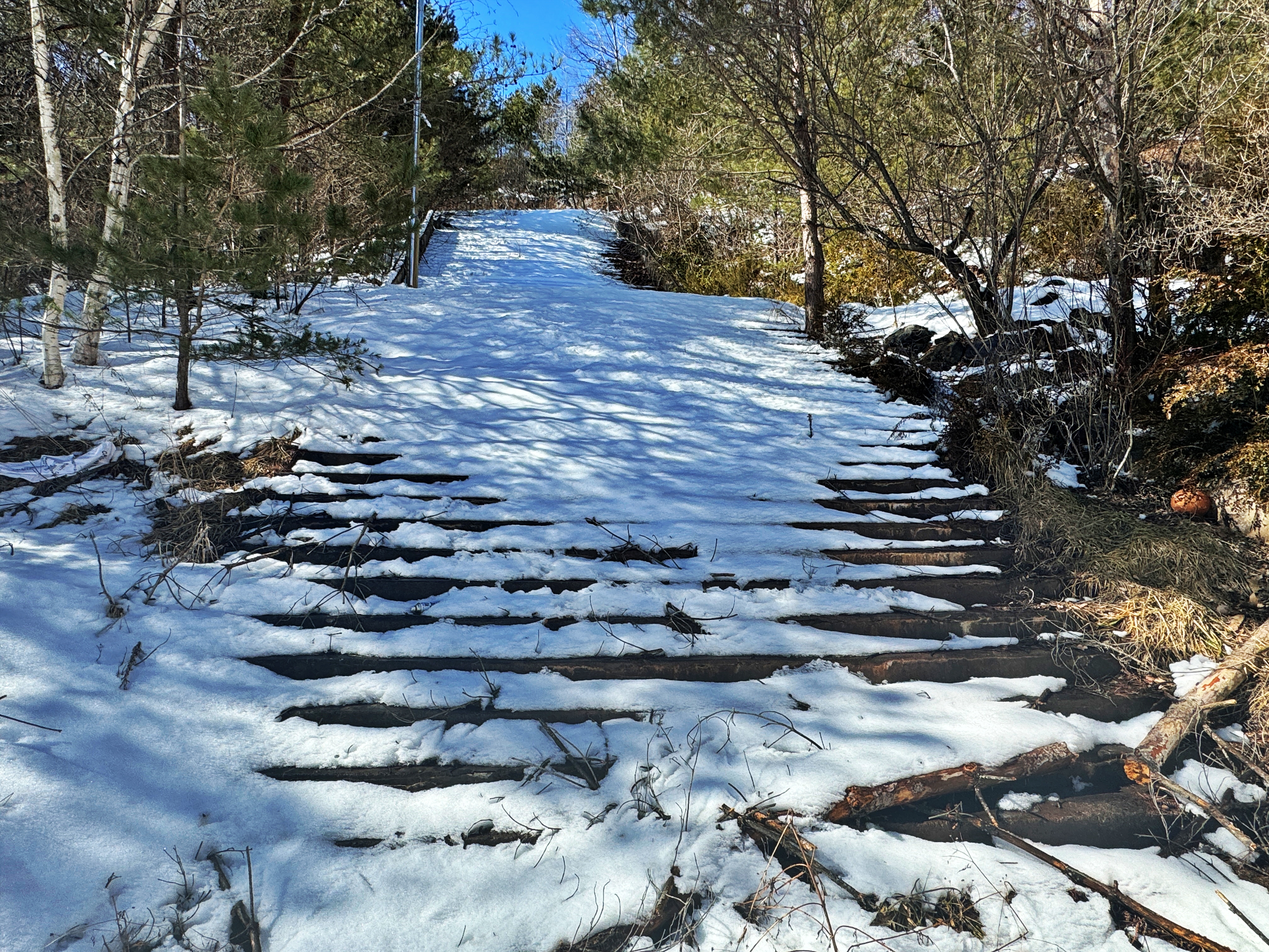 미리내길이라 이름붙여진 등산로 수준의 계단이 있습니다. 그래도 햇볕이 드는 공간은 눈이 다 녹아있네요. 믿고 올라가 봅니다.