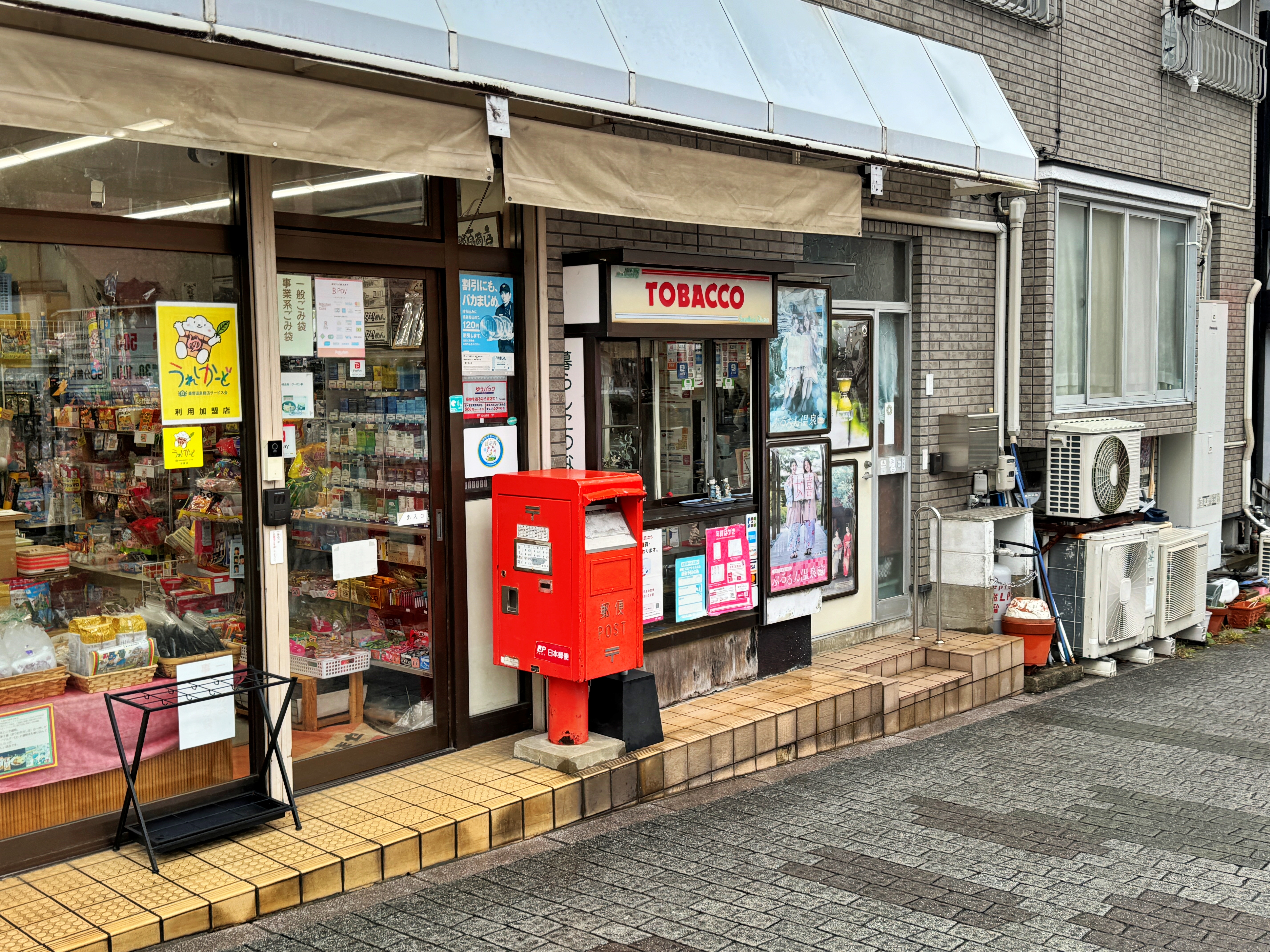 동네 작은 구멍가게입니다만, 담배를 파는 창구와 낡은 우체통이 보입니다.