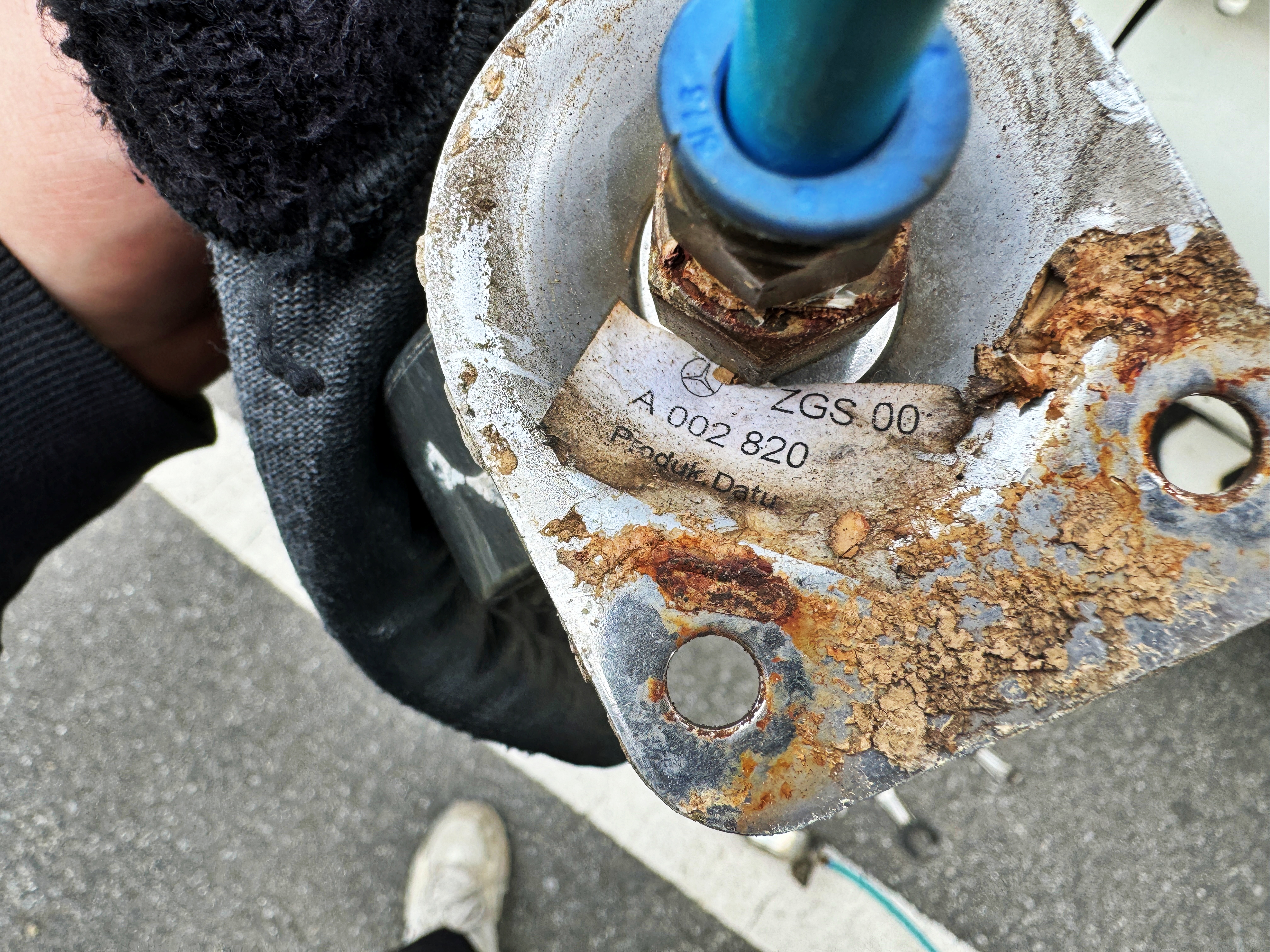 품번이 A 002 820으로 시작하는 물건인데 악트로스 MP3에 순정으로 장착되는 에어혼이라고 합니다. 무려 벤츠트럭에 달려있던 에어혼이 한국산 서민용 1톤트럭에서의 임무를 마치고 탈거되었습니다.