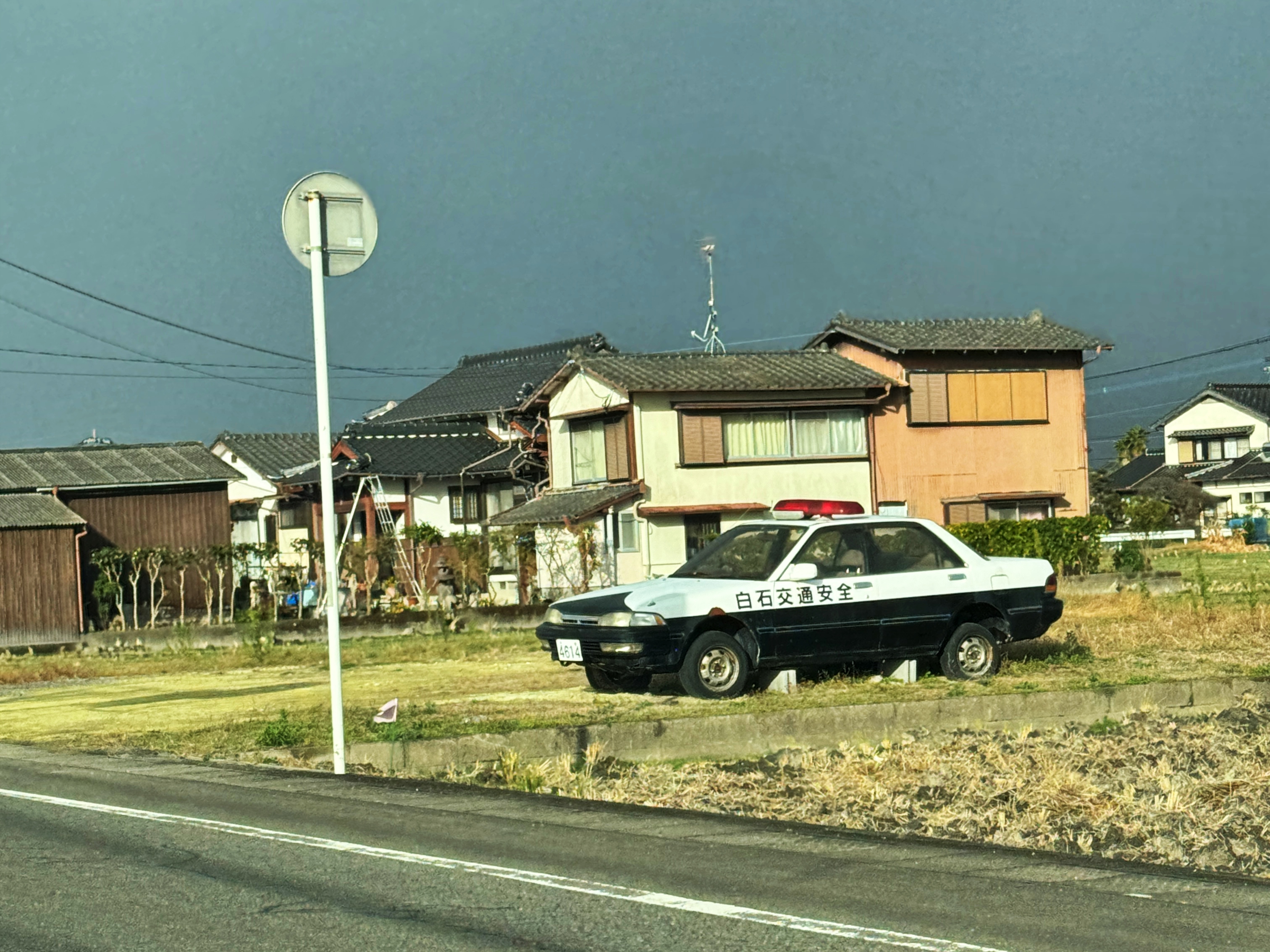 그렇게 시로이시 지역을 빠져나갑니다만, 오래된 순찰차가 보입니다.