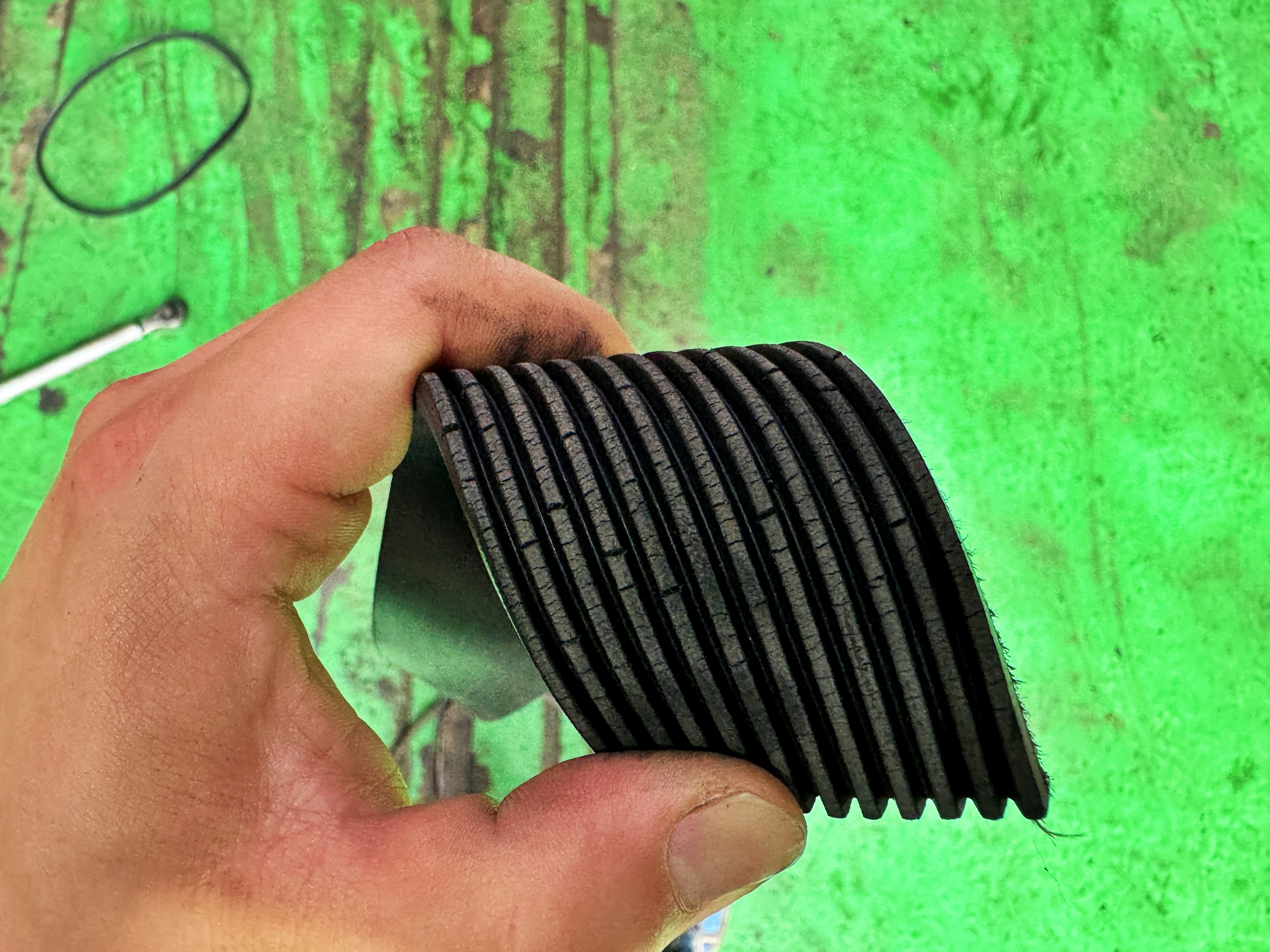 벨트 표면의 품번 정보도 거의 다 지워졌네요. 아마 이 모습을 보고 벨트 교체를 권유하지 않았나 싶습니다. 이날 새로 장착한 벨트 역시 주행거리가 40만 km에 가까워지면 비슷한 상태로 교체되겠죠.