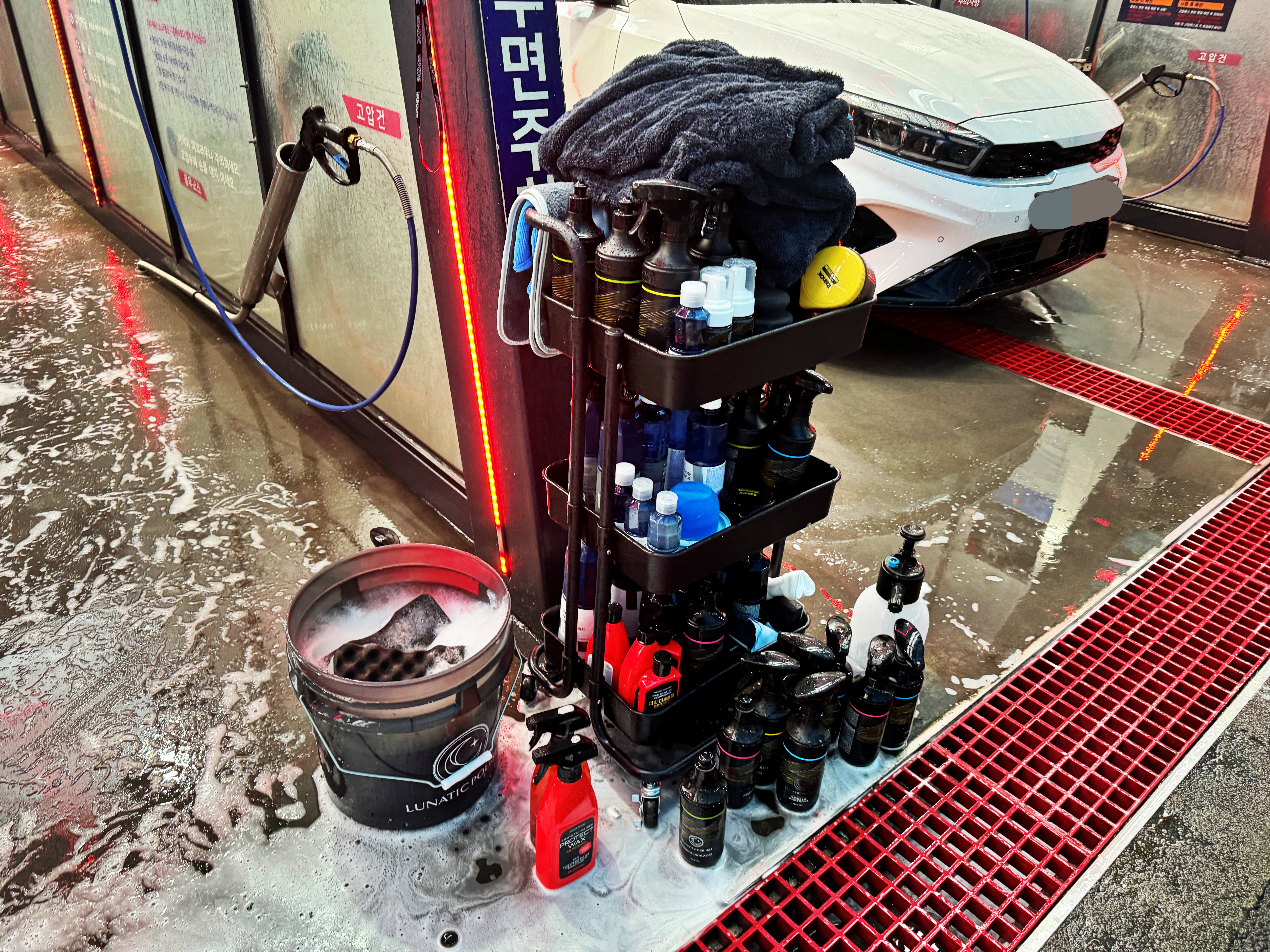 특히 불스원에서도 루나틱 폴리시 브랜드로 습식코팅제의 출시를 준비중이던데 분무기에 습식코팅제를 희석하여 넣어두었습니다. 비가 내려서 드라잉 없이 그냥 세차를 마쳤는데 마지막에 습식코팅제만 한 번 뿌려줬을 뿐인데 나름 괜찮은 효과를 보여주더군요. 그래서 희석되어 나오는 루미너스 습식 코팅제를 하나 구매했습니다.