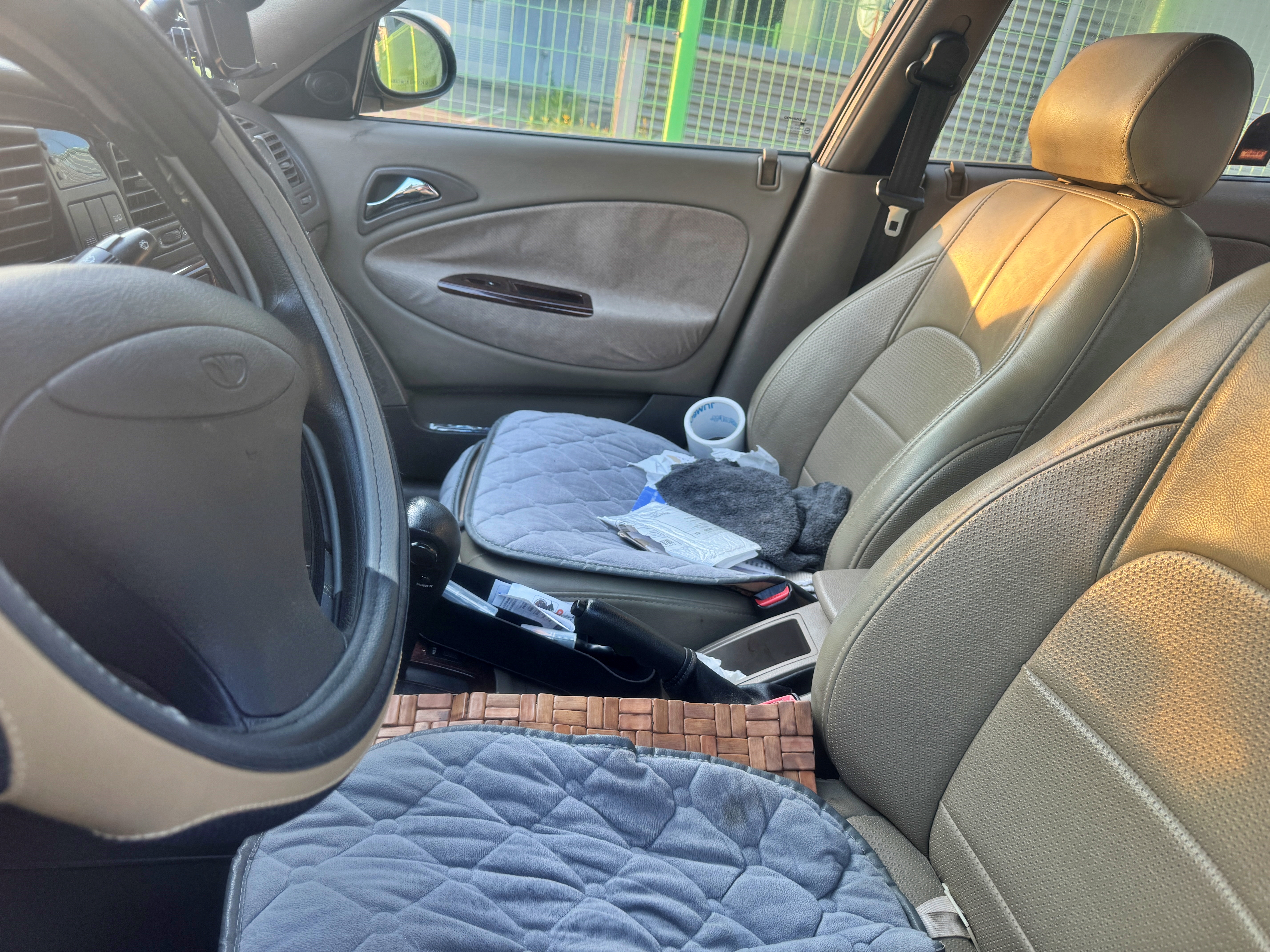 이후 핸들리모콘이 추가되며 노에어백 차량도 4스포크 핸들이 적용되었습니다만, 특유의 3스포크 핸들은 언제 봐도 썩 제 취향은 아닙니다. 그리고 누비라의 경우 최고사양까지 올라가도 순정 가죽시트는 존재하지 않았습니다. 그래서 이렇게 프리미엄임에도 레자커버를 씌워놓고 다니시는군요.
