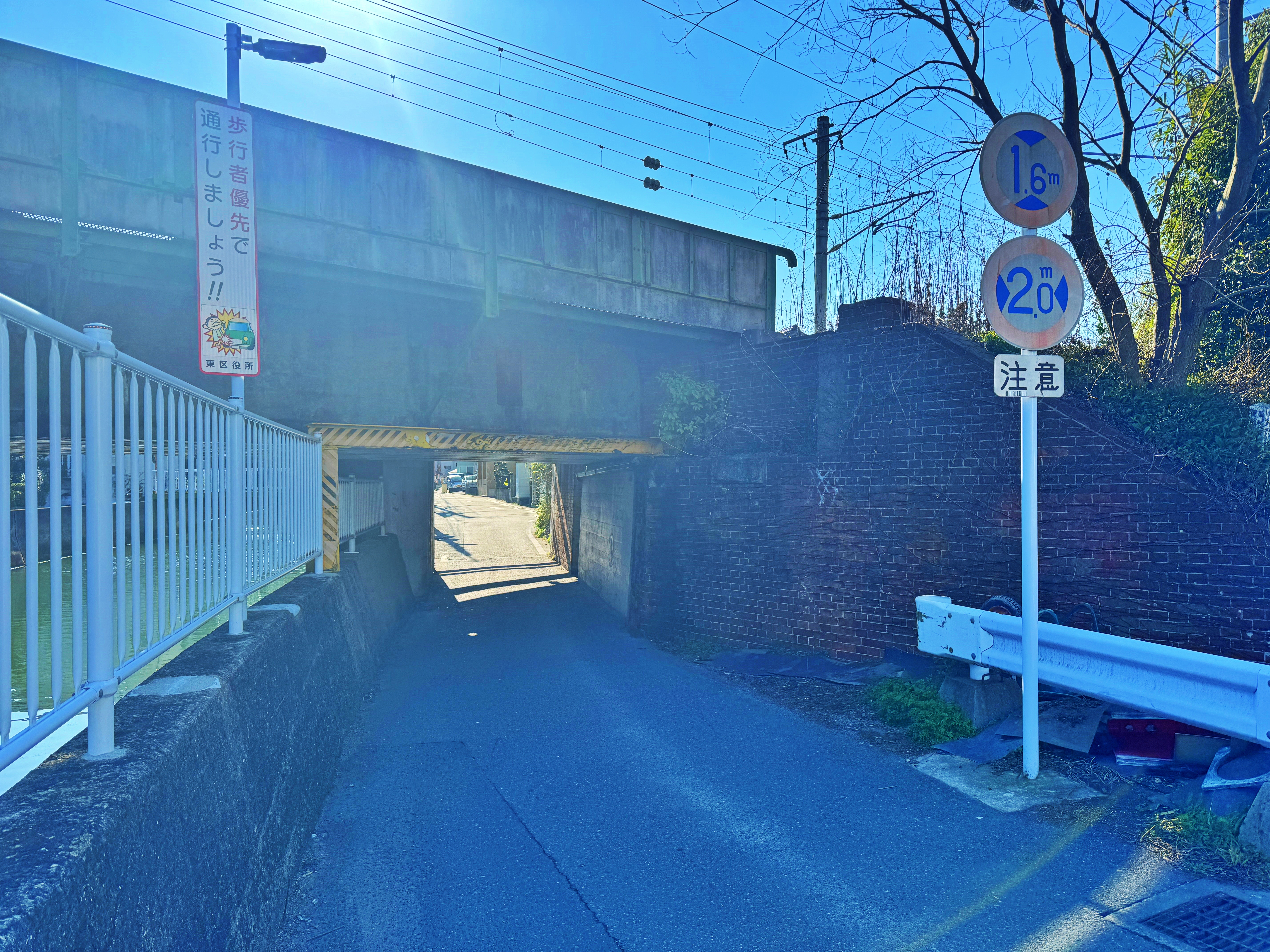 높이 1.6m. 폭 2.0m라는 표지판이 붙어있습니다만, 1.7m 조금 넘는 제가 지나가도 여유가 있었습니다. 아마 땅을 조금 더 파서 여유공간을 만들었겠죠.