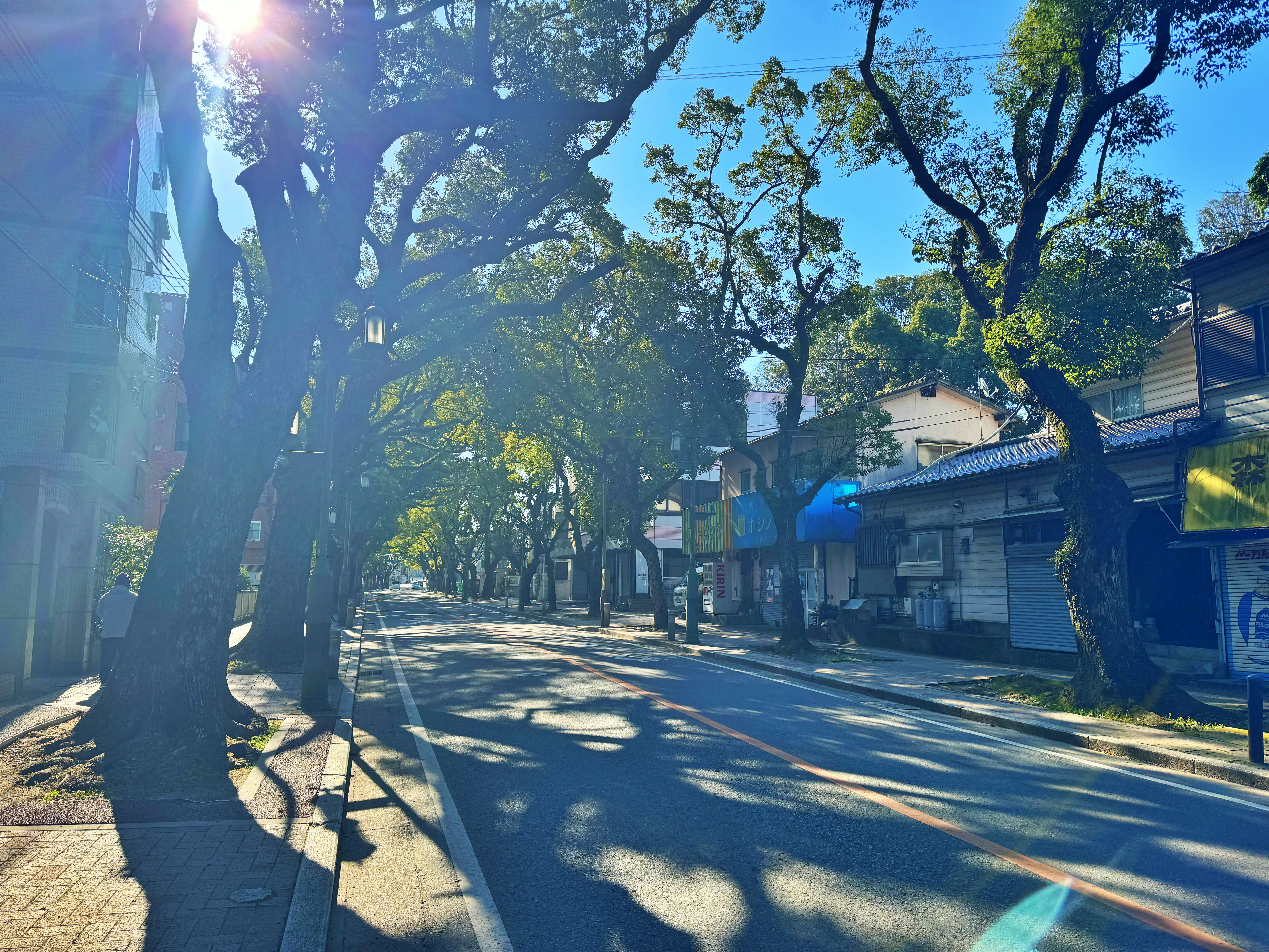 이 도로를 한국어로 칙사도(勅使道)라고 읽는데, 일본어로 초쿠시도라고 한답니다. 이 고목들은 죄다 녹나무라고 합니다. 이 녹나무들은 수백년의 세월을 살아왔겠죠. 차도쪽은 나무 그늘이 형성되어 있습니다.