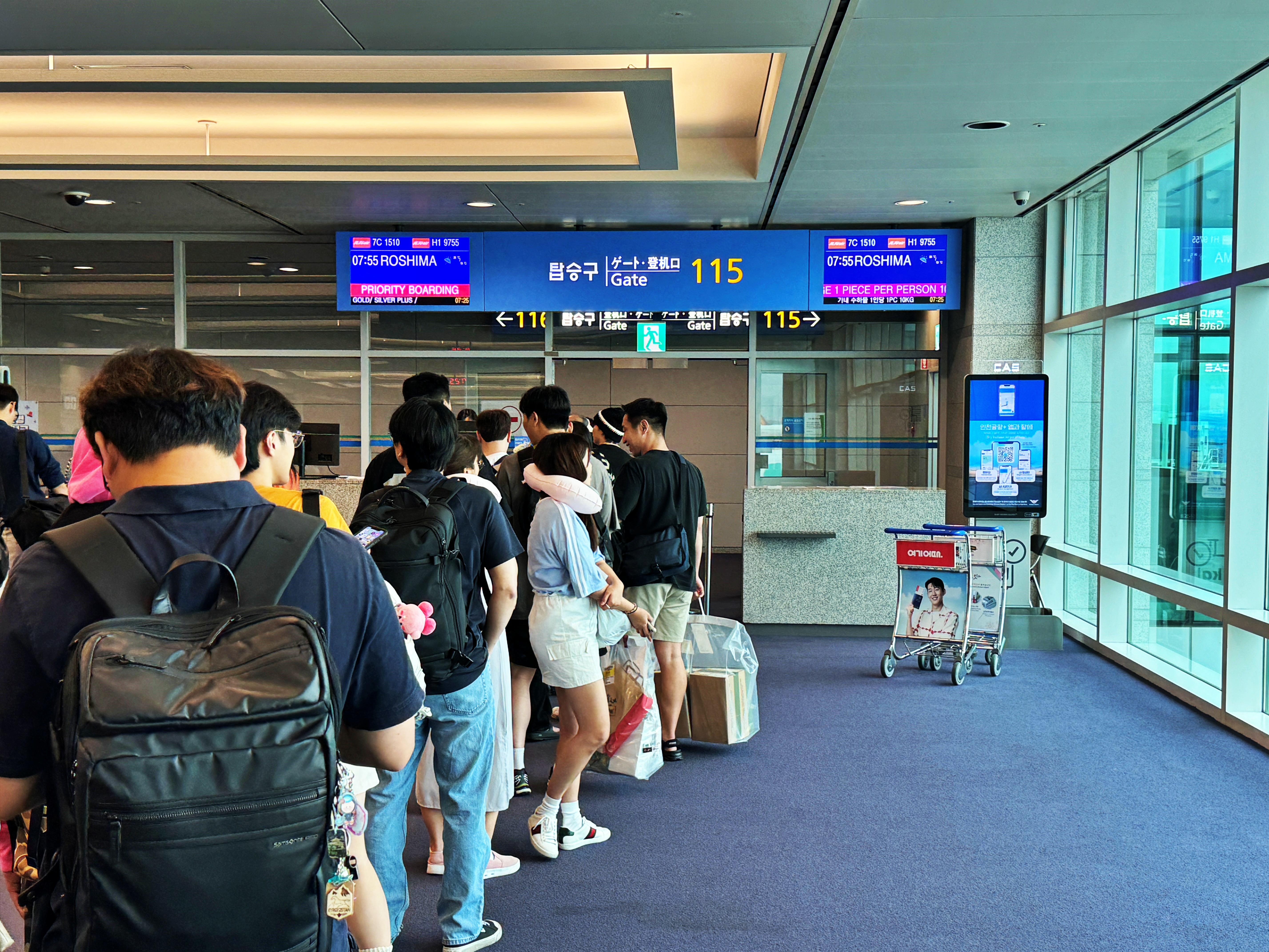 요즘도 중간중간 오류가 생겨 창구로 가는 사람들이 있었습니다만, 다행히 무사히 넘어갔습니다. 캐리어 대신 백팩을 가지고 왔는데 일정이 짧고 구입해가는 물건이 적은지라 캐리어 대신 배낭을 챙겼습니다. 그냥 기내수하물로 가지고 타도 됩니다만, 귀찮아서 화물로 보냈습니다.