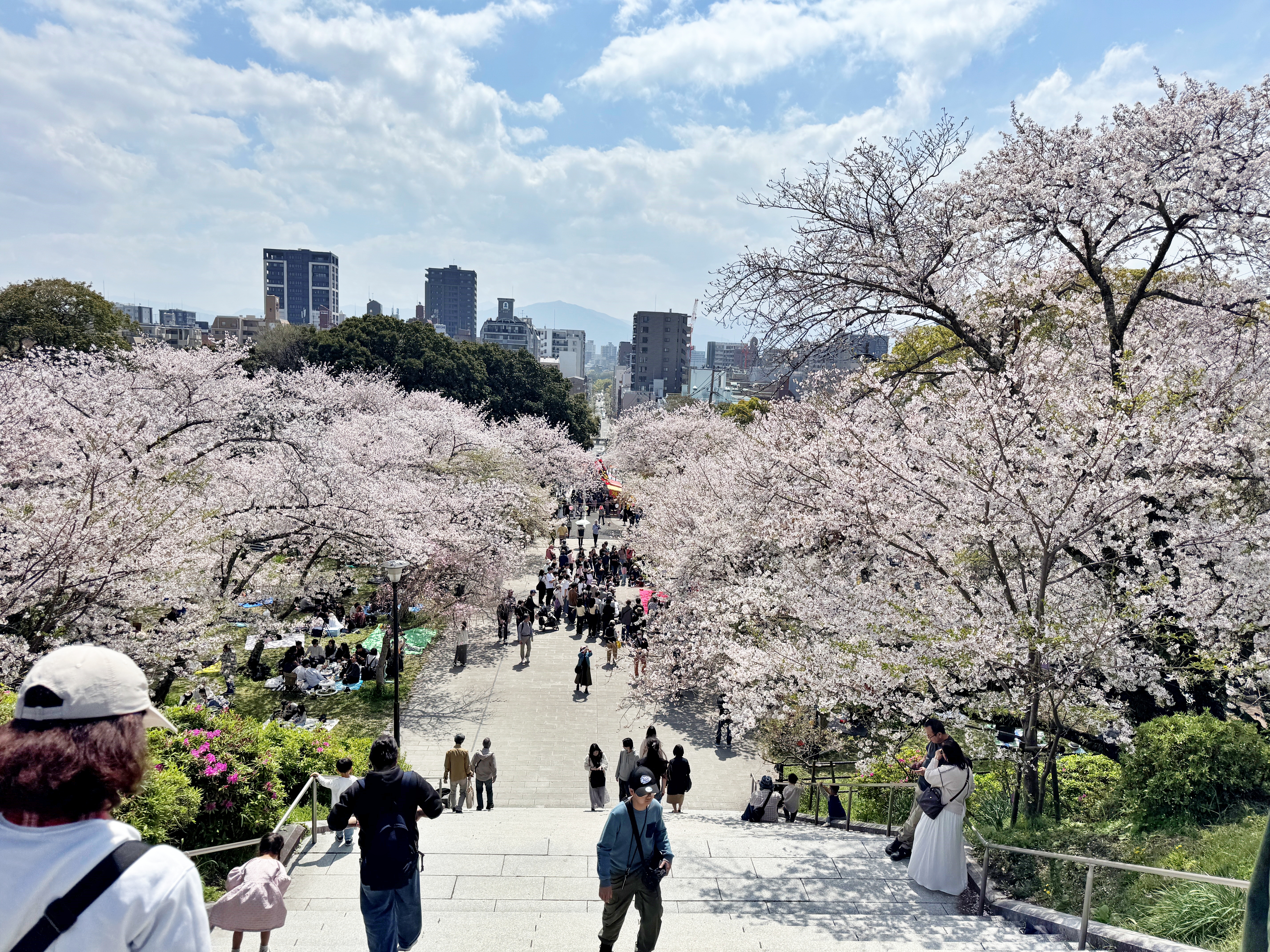 일본 전역에서 벚꽃 명소 100선 중 하나로 꼽히는 유명한 벚꽃 명소라 그런지 주변 주차장은 만차. 두 바퀴 돌다가 한참 떨어진 주차장에 차를 세우고 걸어왔습니다. 후쿠오카에 그렇게 자주 다니면서도 봄에는 벚꽃 명소로 가을에는 단풍 명소로 이름을 날리는 이곳에 딱히 와 본 적이 없었다는게 신기하게 느껴졌네요.