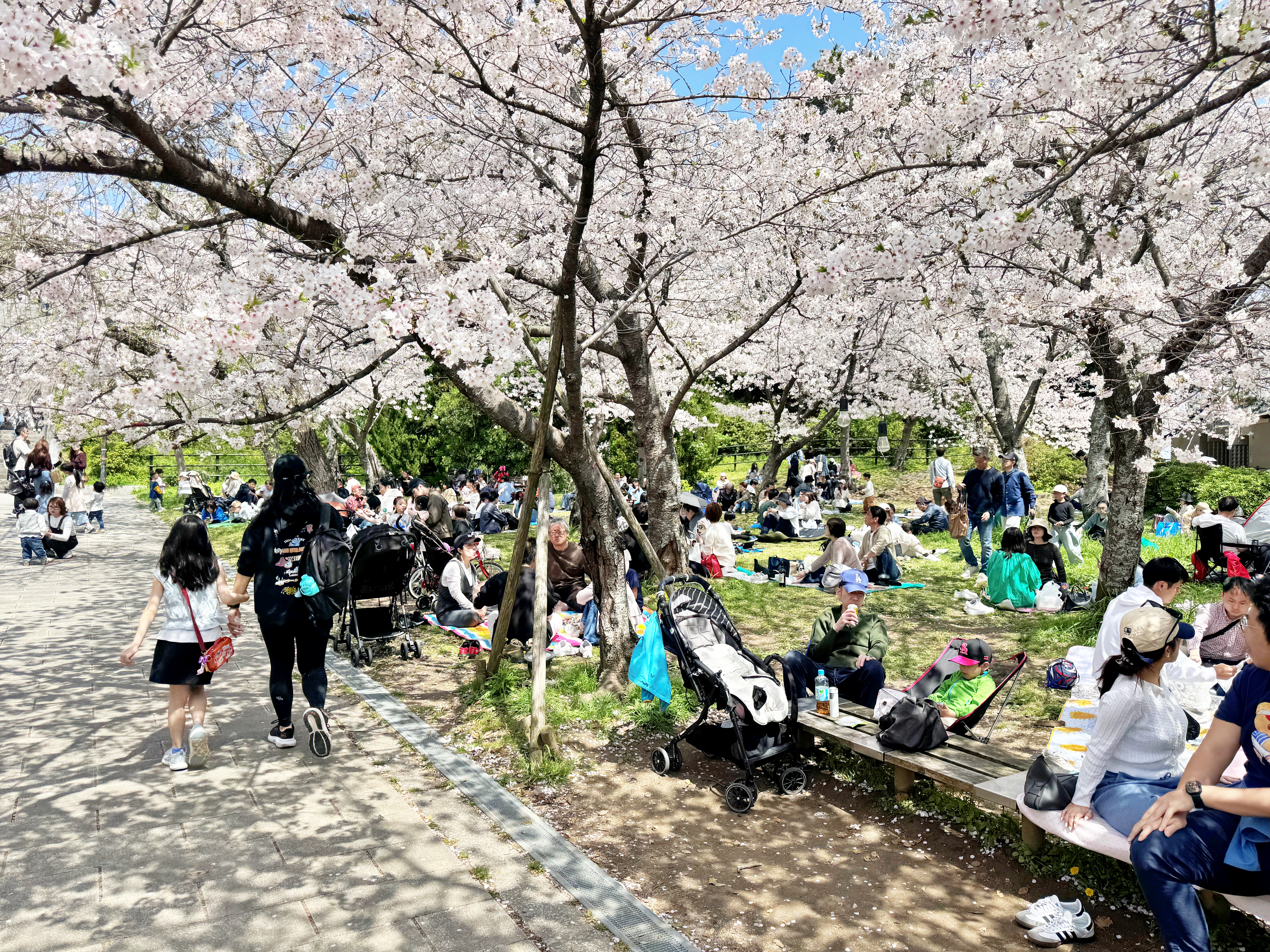 노점이 없는 잔디밭은 돗자리를 깔고 벚꽃을 즐기는 사람들로 가득했네요.