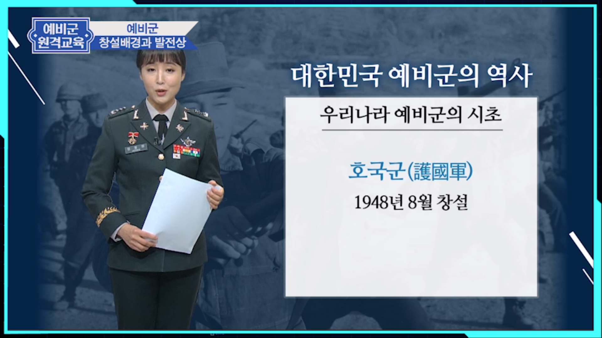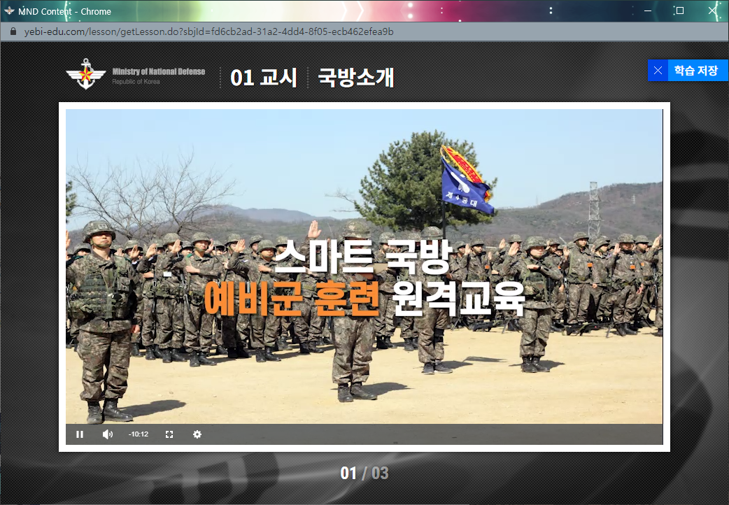 좌측 상단 예비군 원격교육 관련 자막이 존재하지 않으며 화질이 떨어집니다.