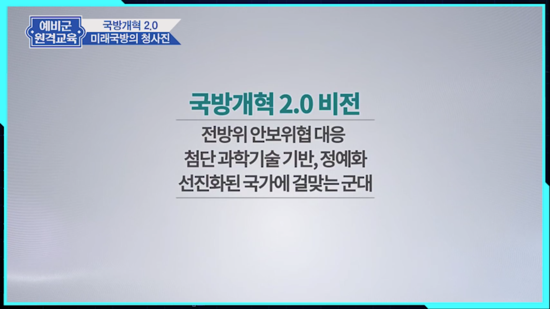이후 1교시 두번째 영상은 국방개혁 2.0 정책홍보