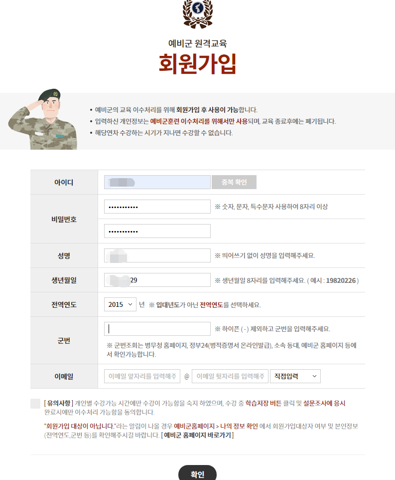 예비군 원격교육 홈페이지 가입하기