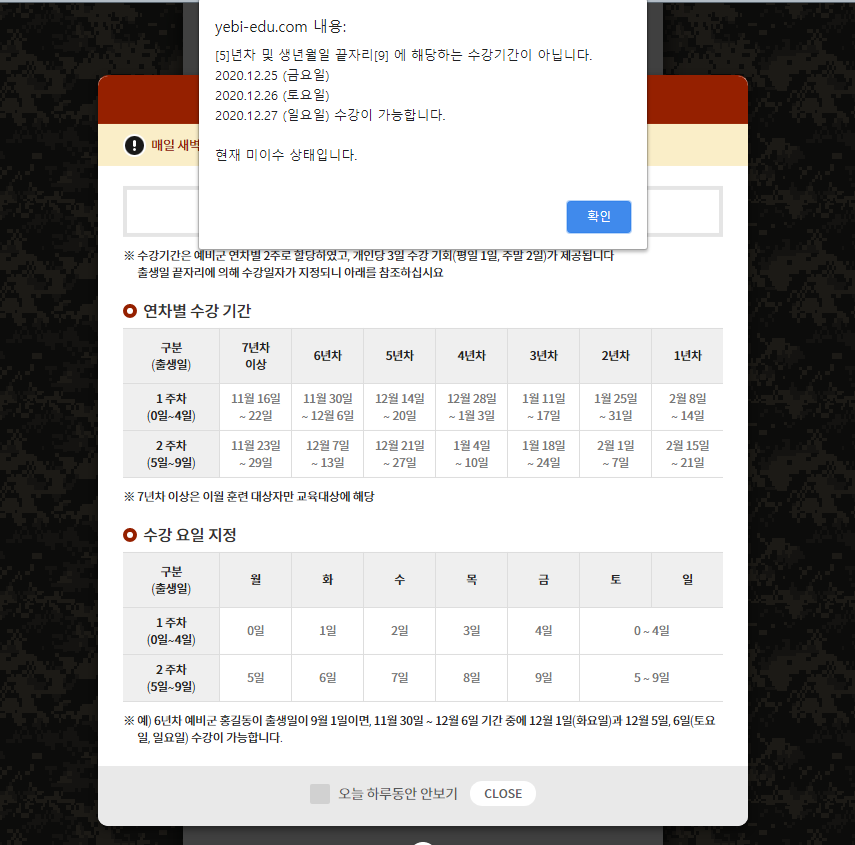네. 이수를 마쳤습니다. 생년월일 끝자리에 따라 수강 가능일자가 정해지고, 토요일과 일요일은 생일과 관계없이 모두 수강이 가능하다고 합니다. 천상 내년에도 코로나19 종식은 불가피하다 여겨지기에 원격교육으로 대체될 확률이 높아보입니다만, 일단 뭐 내년에 어찌 흘러갈지 모르니 여유가 있으실 때 원격교육을 수강하시는건 어떠실지요. 그렇게 2020년 5년차 예비군 교육을 마쳤습니다.