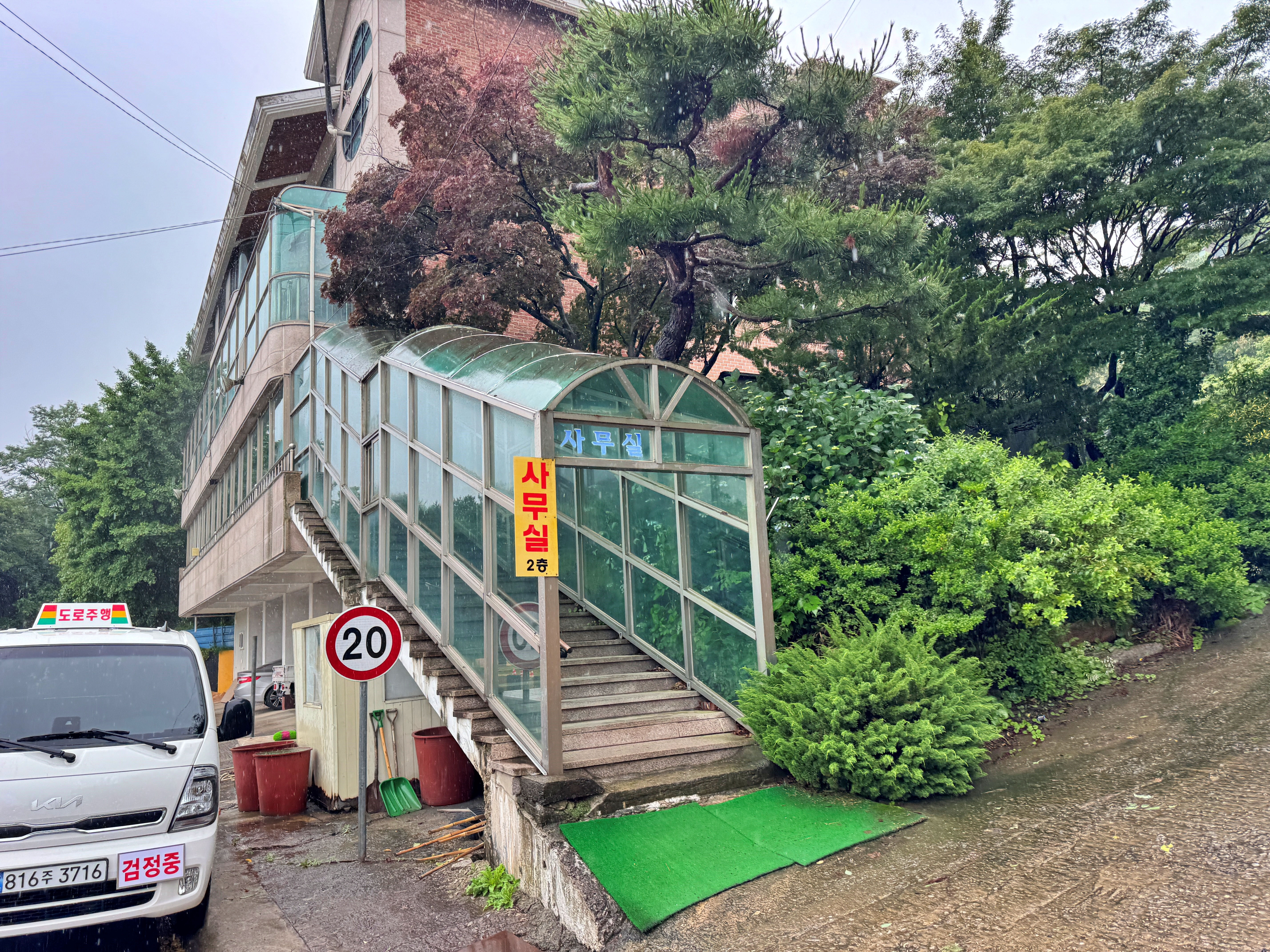 차를 세우고 계단을 타고 학원 사무실로 올라갑니다.