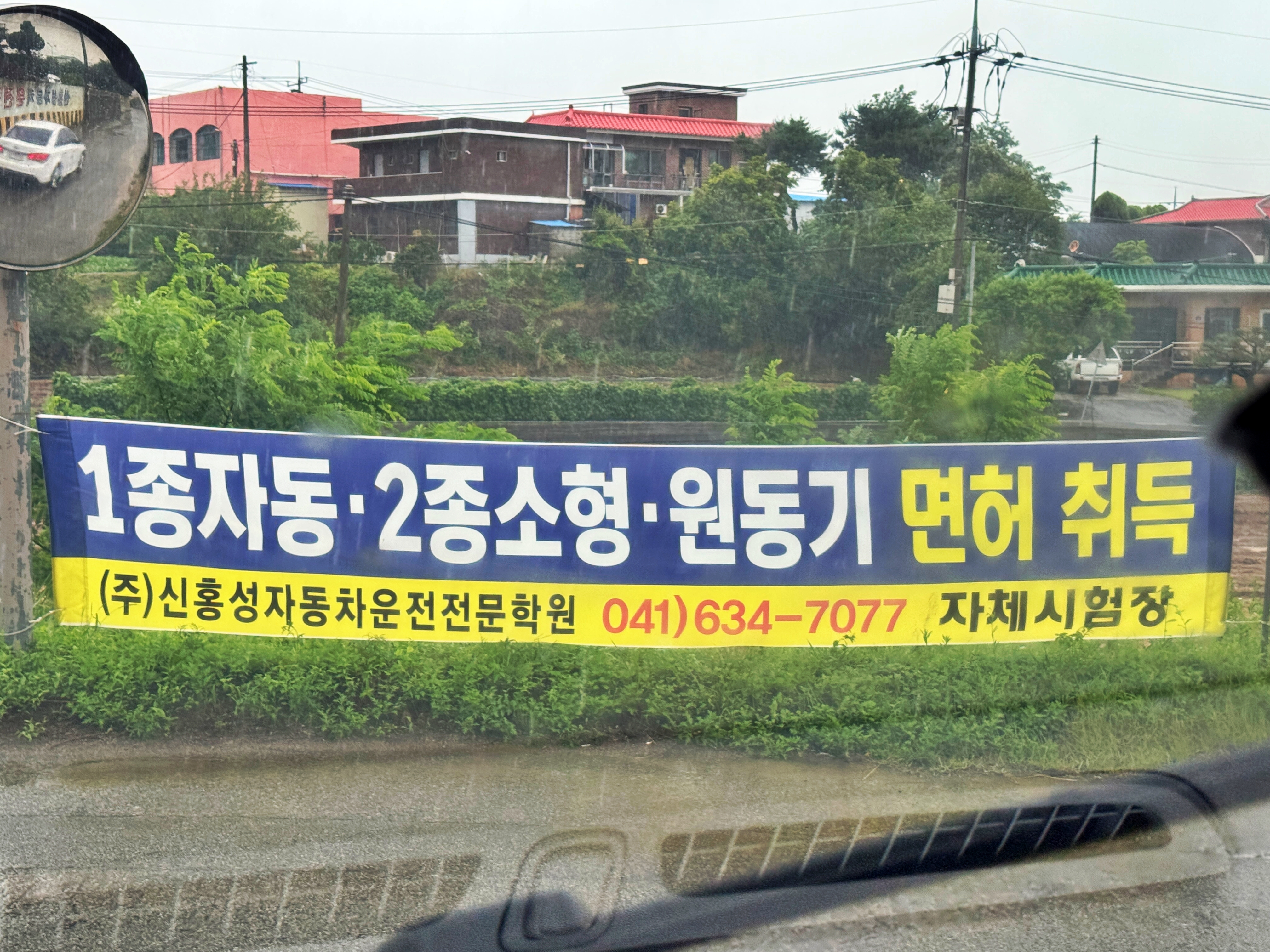 최근 신설된 1종 자동면허와 2종 소형면허 그리고 원동기 면허의 취득이 가능하다는 현수막이었습니다.