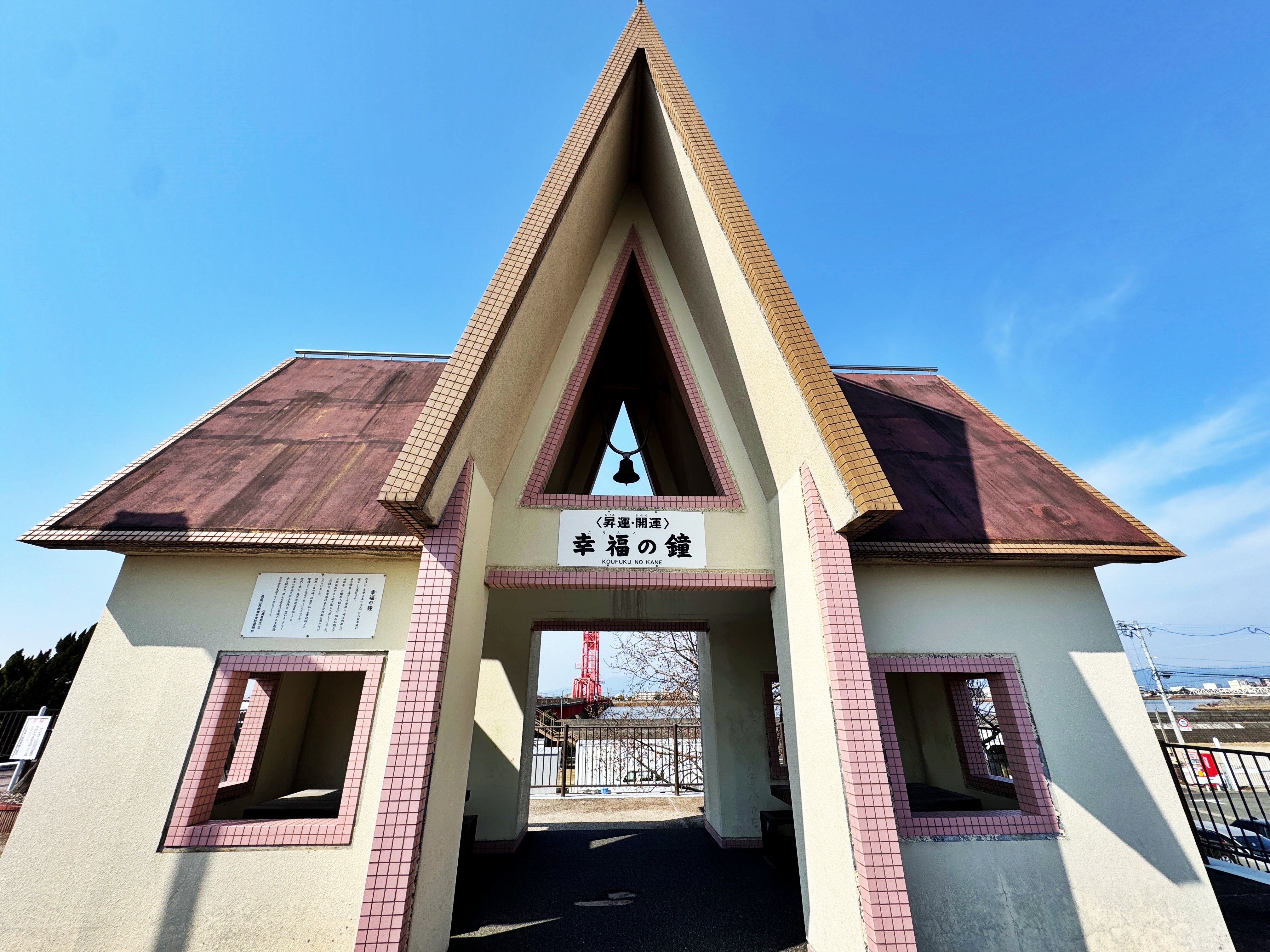 행복의 종(幸福の鐘)이라는 간판이 걸려있는 건물이 간이역이었던 치쿠고와카츠역(筑後若津駅)입니다.