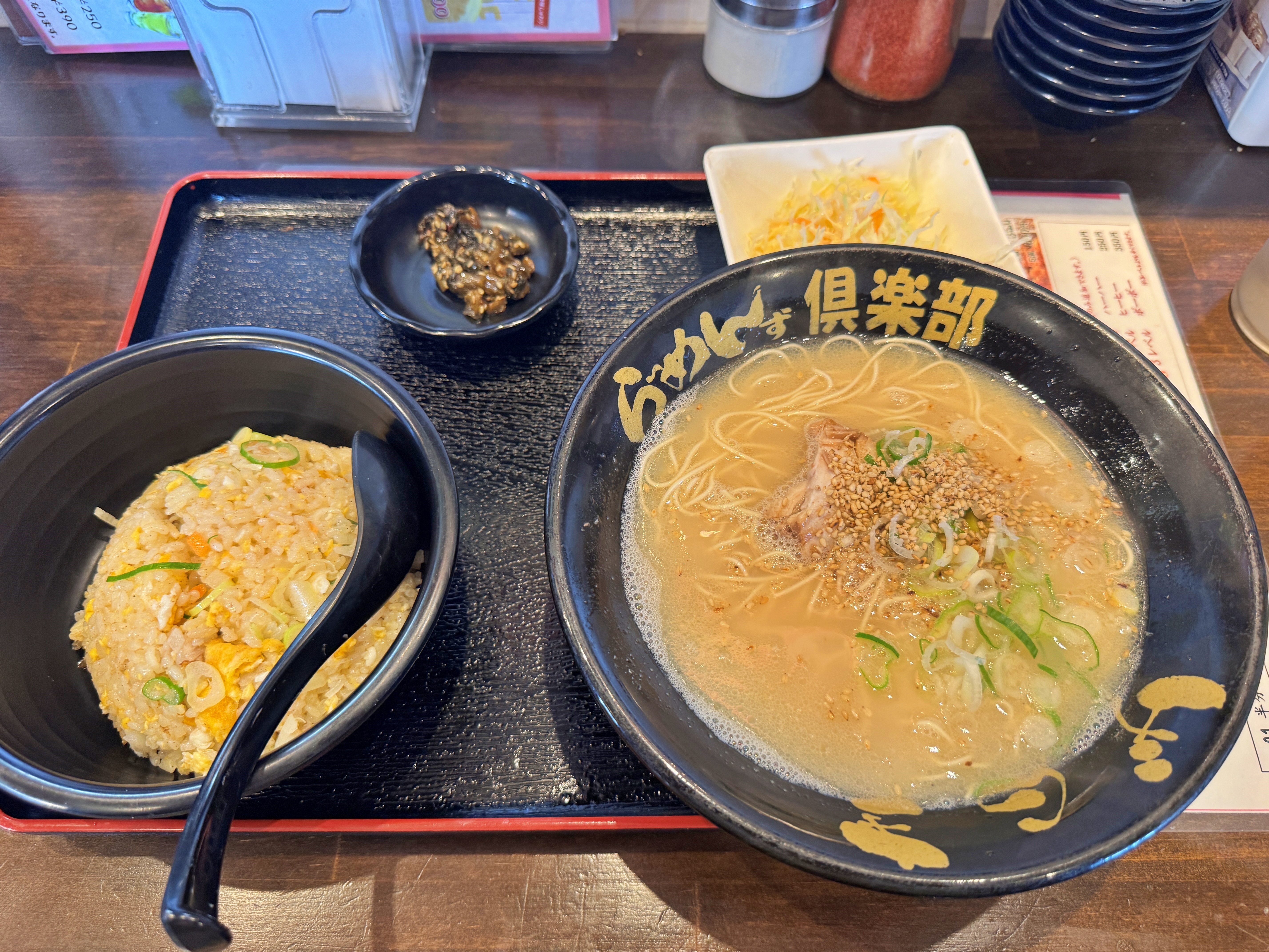 야키소바나 가라아게 돈카츠같은 메뉴들도 있지만 주력 메뉴는 라멘입니다. 라멘에 밥이나 교자가 까지 얹어주는데도 비싸봐야 1200엔 수준이네요. 뭘 먹을까 하다가 중국식 볶음밥(チャーハン)과 돈코츠 라멘이 함께 나오는 980엔짜리 챠항세트를 주문했습니다.