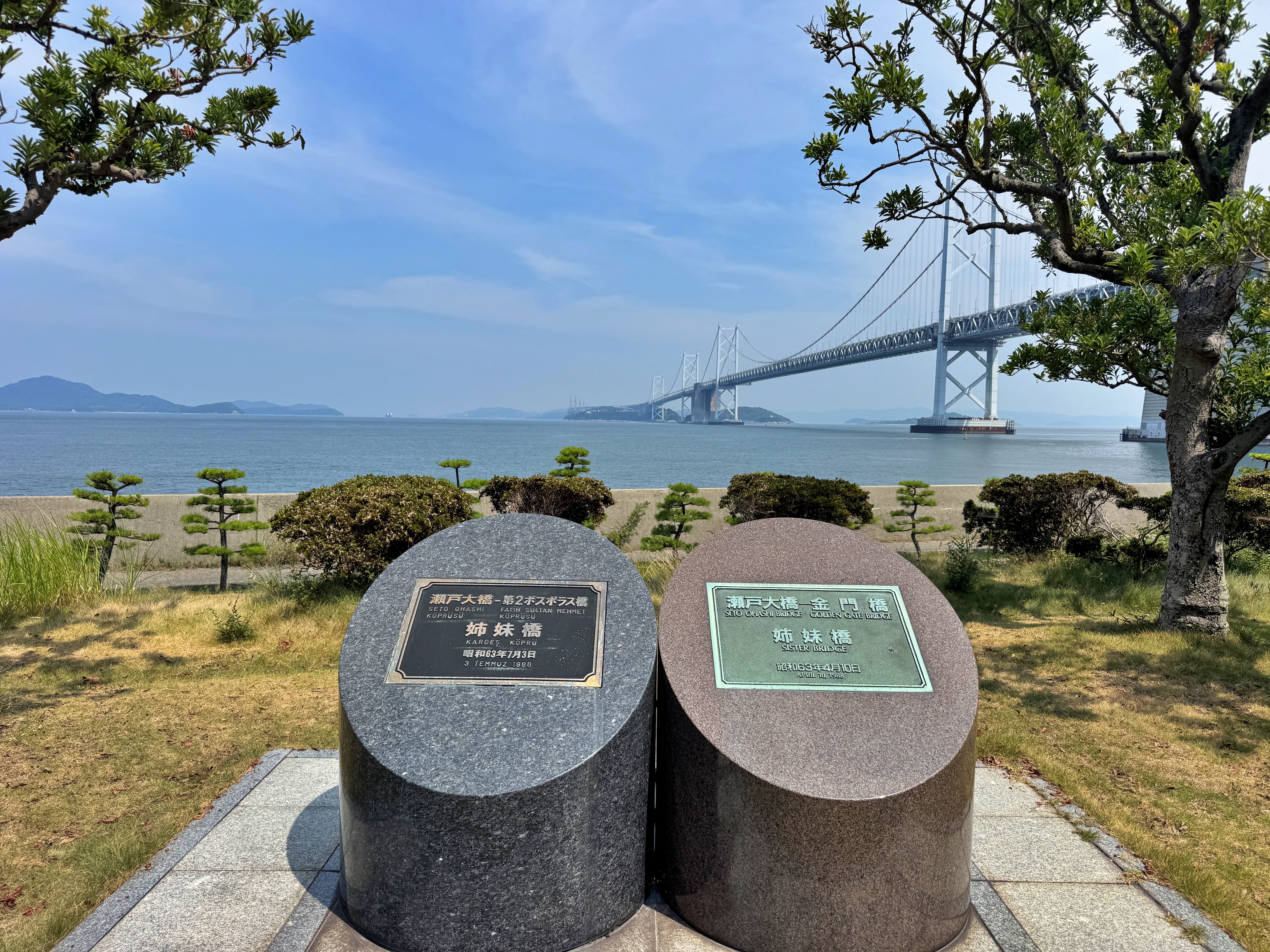 1978년 착공하여 1988년 개통까지 총 10년의 공사기간이 소요되었고, 현재까지도 철도와 도로가 함께 지나가는 병용교로서는 세계 최장의 기록을 보유하고 있다고 하네요. 한국의 거가대교가 거제도와 부산을 거치며 여러 섬을 경유하듯 기념관이 있는 샤미시마의 간척지를 포함하여 시와쿠 제도의 다섯개의 섬을 경유하여 지나갑니다. 그러며 현수교와 트러스트교라는 세가지 방식으로 건설되었다고 합니다.