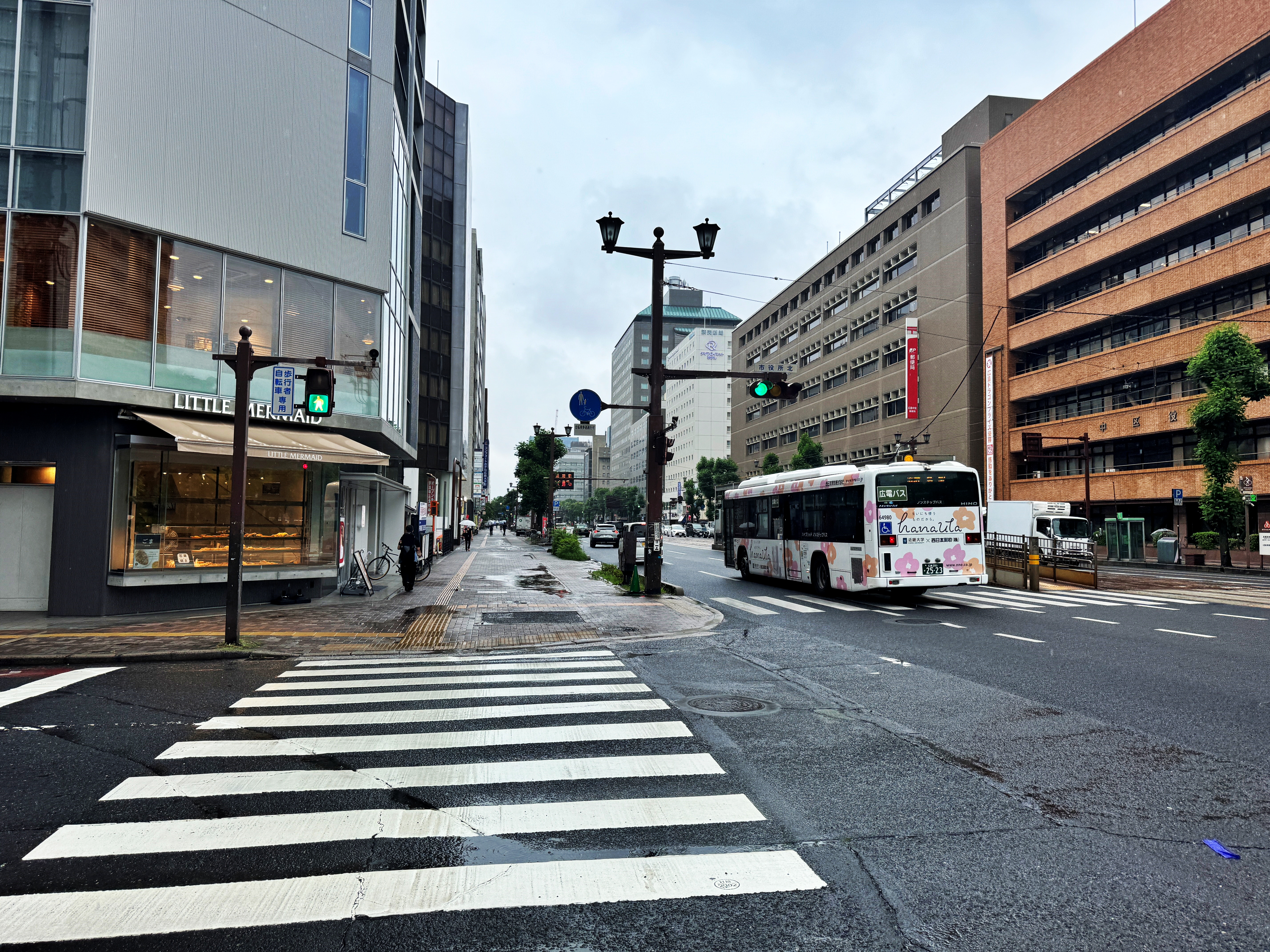 좌측이 중구청 길 건너편이 시청입니다. 시내 중심가에 주말이라 그런건지 조금 더 큰 규모의 후쿠오카보다 교통체증은 덜한 느낌입니다. 횡단보도를 건너 구청과 우정청 옆 보도를 이용하여 호텔로 접근하기로 합니다.