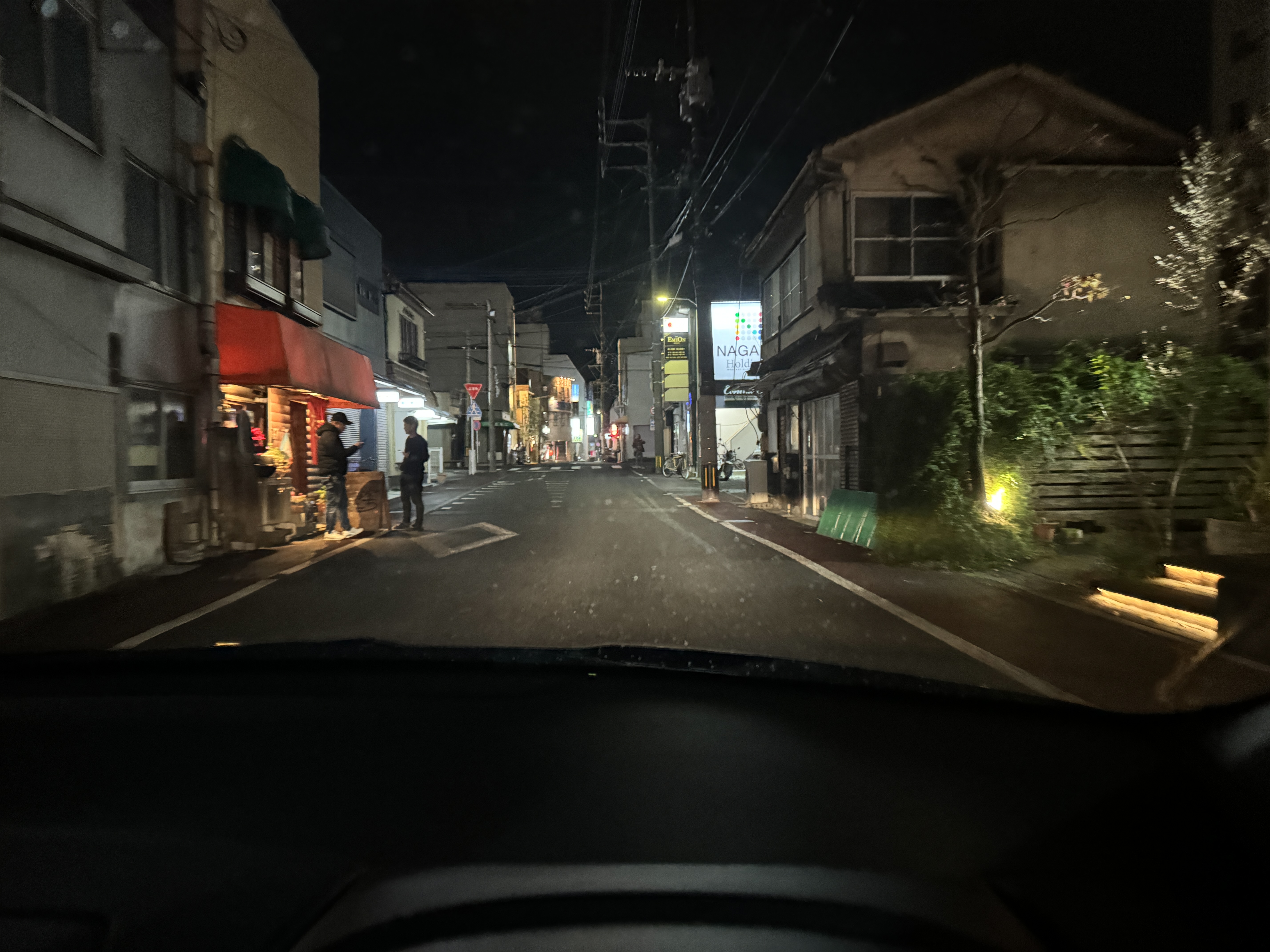 도로를 지나는 자동차와 밝은 조명이 켜진 가로수가 배경입니다. 4월에 방문한다면 어떤 느낌일지는 몰라도요. 그렇게 다음 목적지를 향해 사가 시내 안쪽으로 더 들어갑니다.