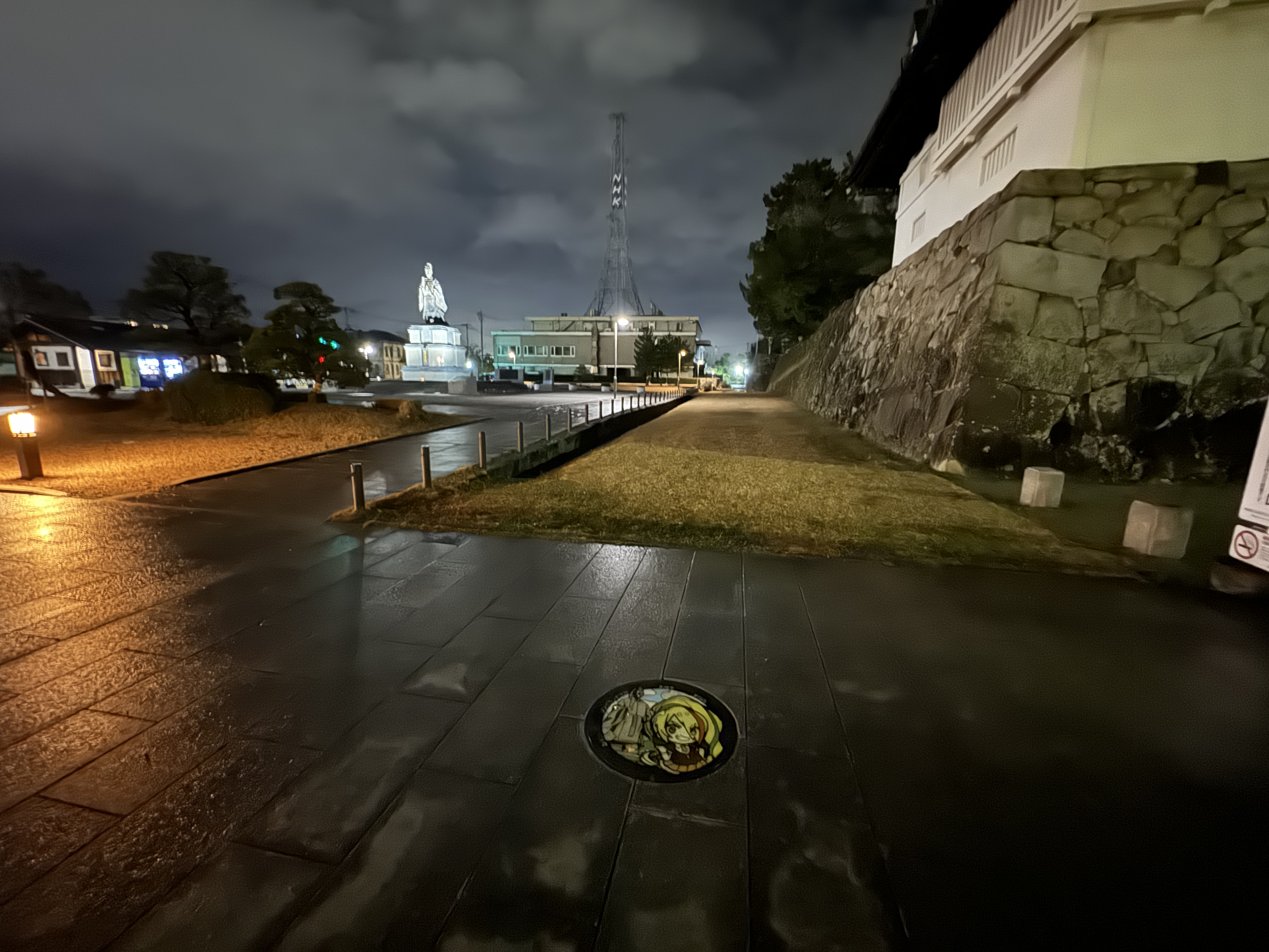구도심 활성화를 위해 만들어진 문화시설인 PLAZA 656을 배경으로 하고 있는 오수 맨홀입니다. 캐릭터는 호시카와 릴리. 1기로 기억하는데 이 장소에서 있던 악수회에서 아버지와 조우했던 에피소드가 있었습니다. 그래서 선정되지 않았나 싶네요. 지난 8월에 이 맨홀을 보고 좀비 랜드 사가 맨홀의 존재를 알게 되었고 12월 여행의 방향성을 맨홀뚜껑 성지순례로 잡게 되었습니다. 제겐 가장 의미가 큰 맨홀이 아닌가 싶네요.